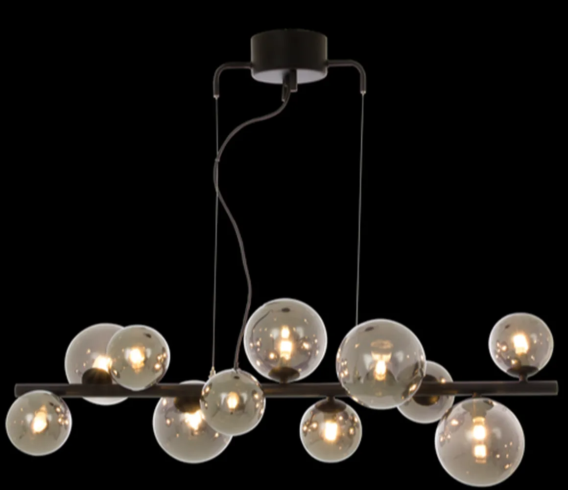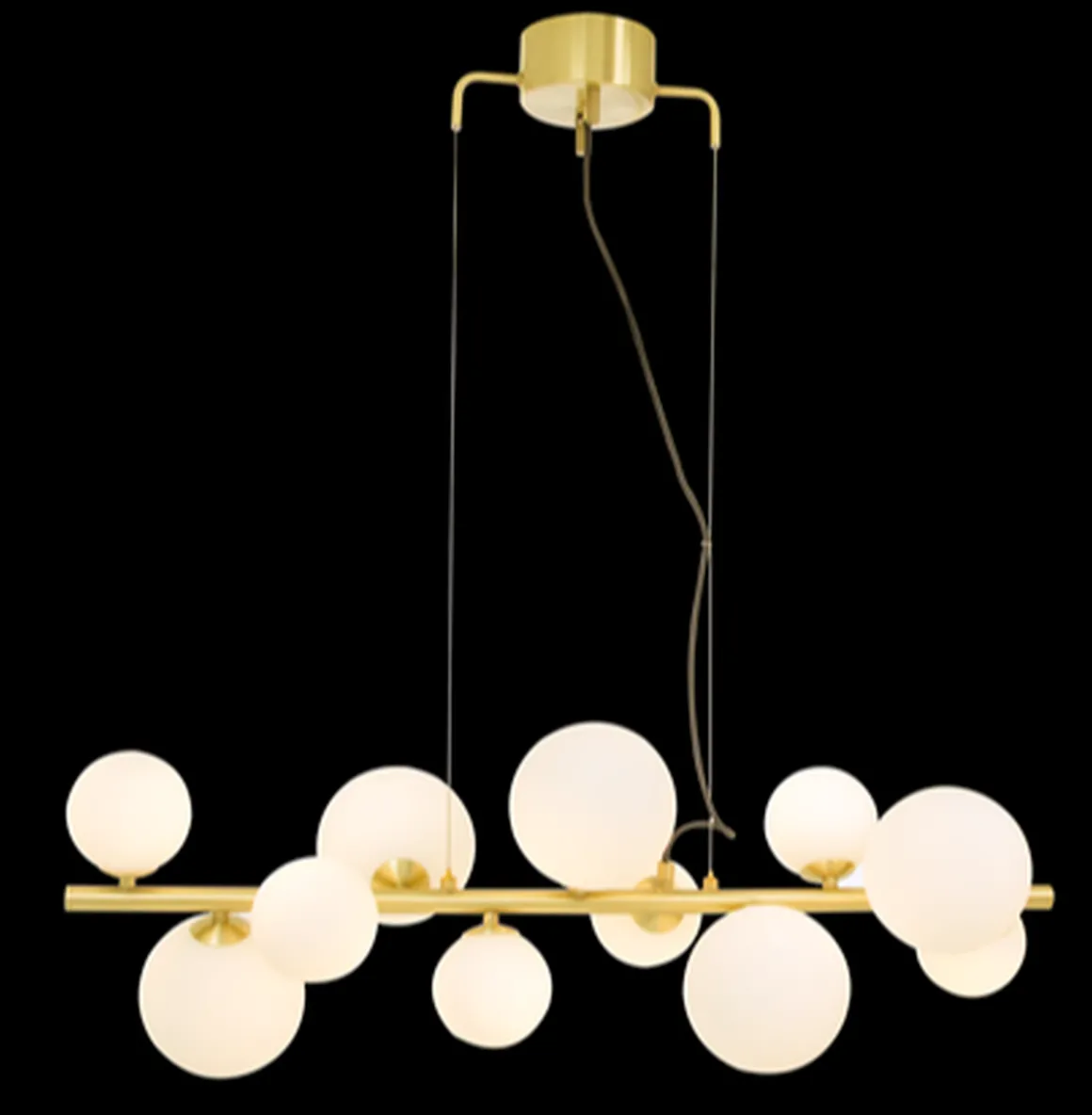 Nydelig og elegant takpendel med opalhvite glasskupler og messingdetaljer.