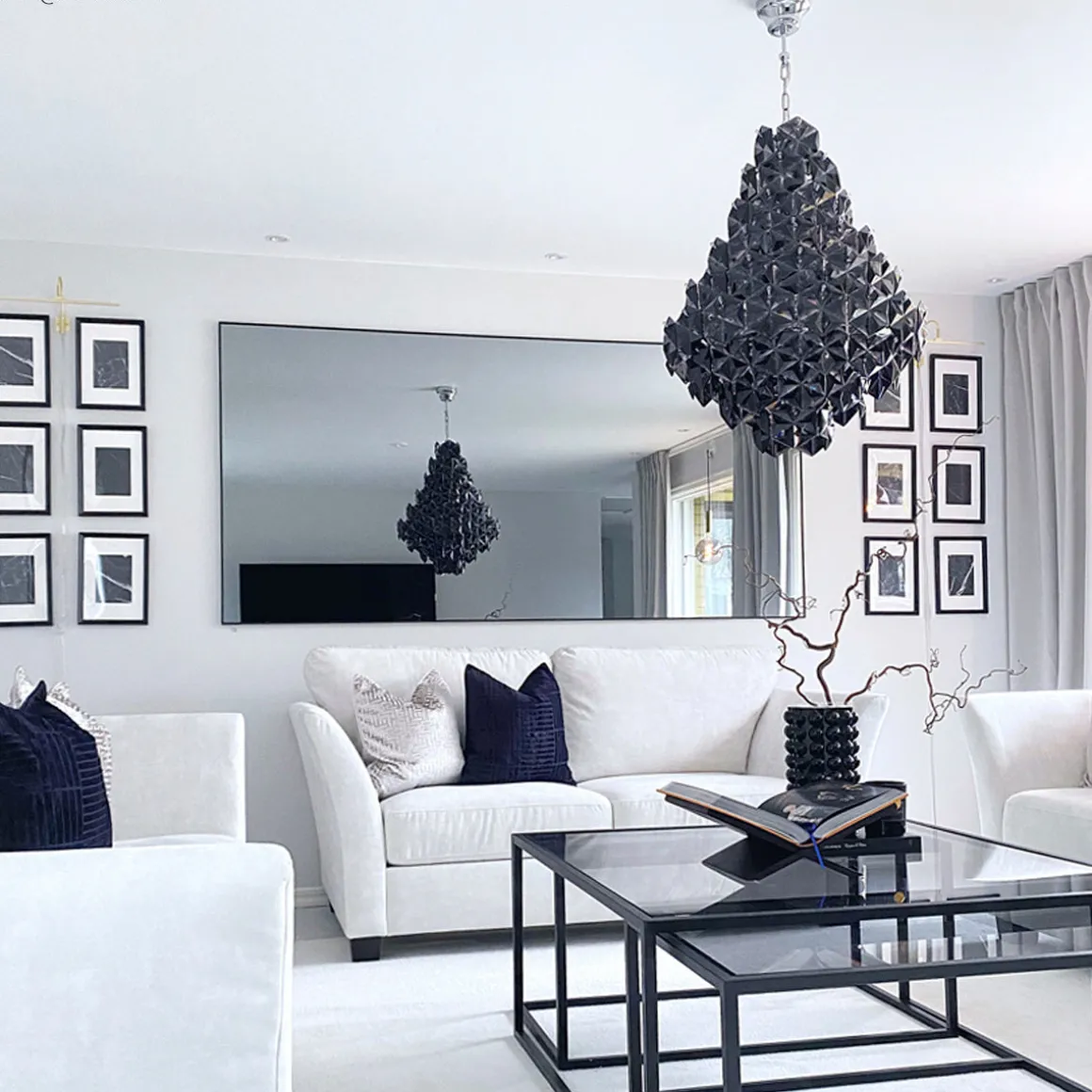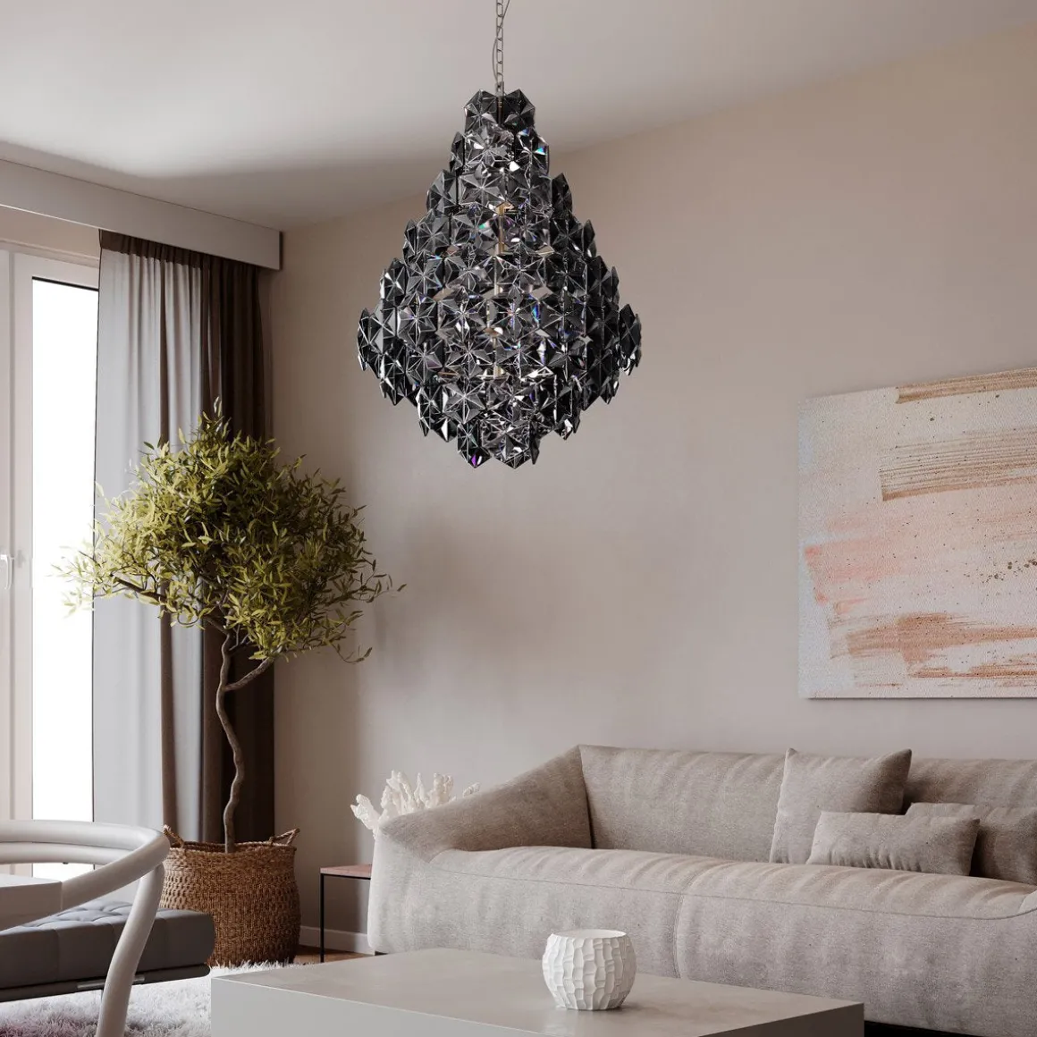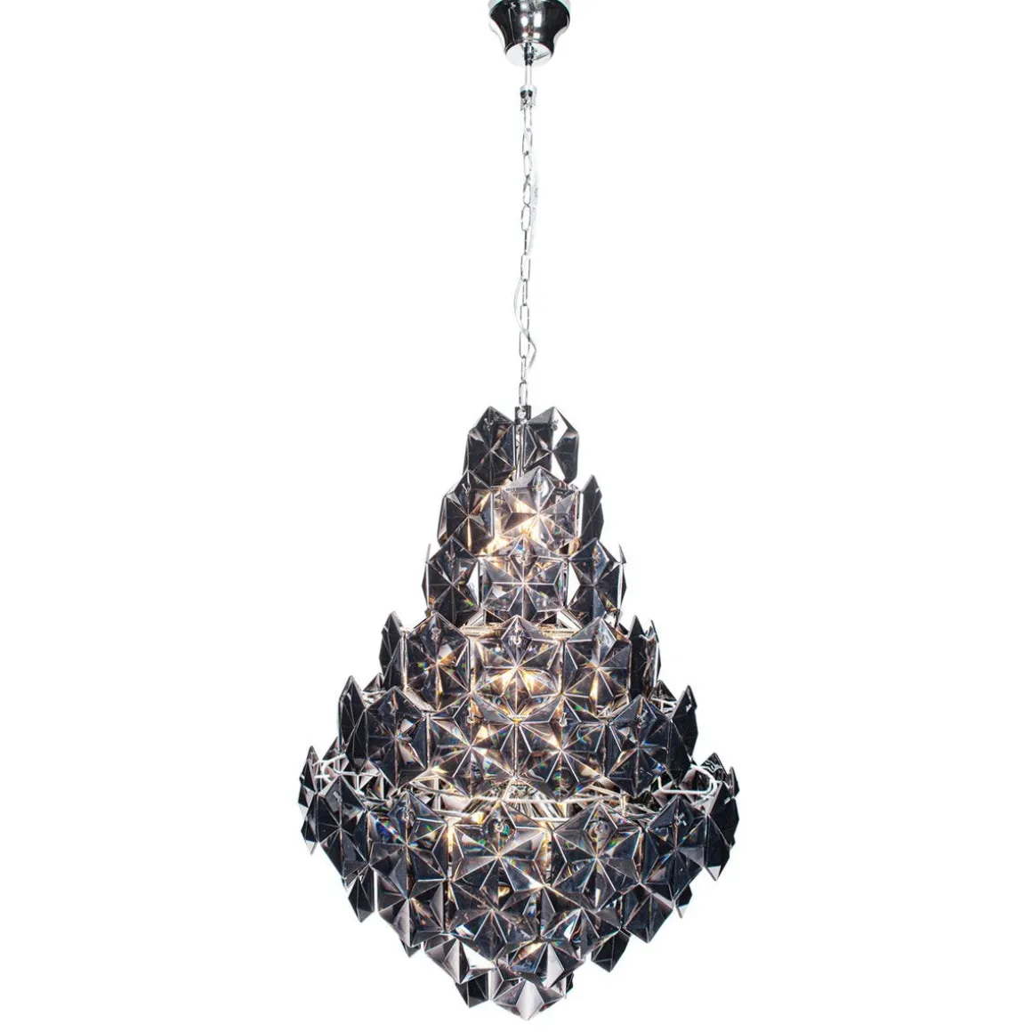 Monarque grande er en helt fantastisk taklampe i klar akryl med detaljer i sort kromfarge. En stilig lampe som setter preg der den plasseres.