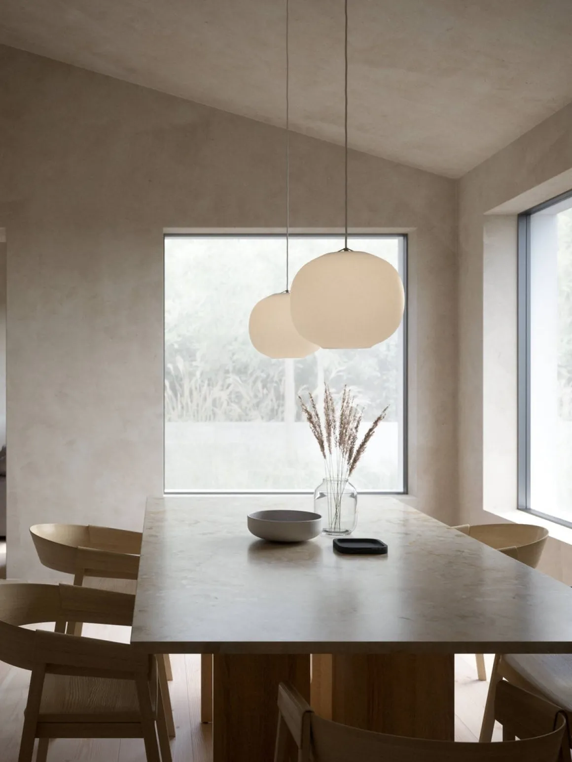 Navone er designet av det danske designstudioet Mavro/Lefevre. Den generelle formen på skjermen er myk og rund, men den svært subtile buede bunnen tilfører en ny interessant dimensjon som forvandler lampen til mer enn bare en kule. Messingdetaljene tilfører et moderne preg, og understreker lampens avbrutte lyshet.