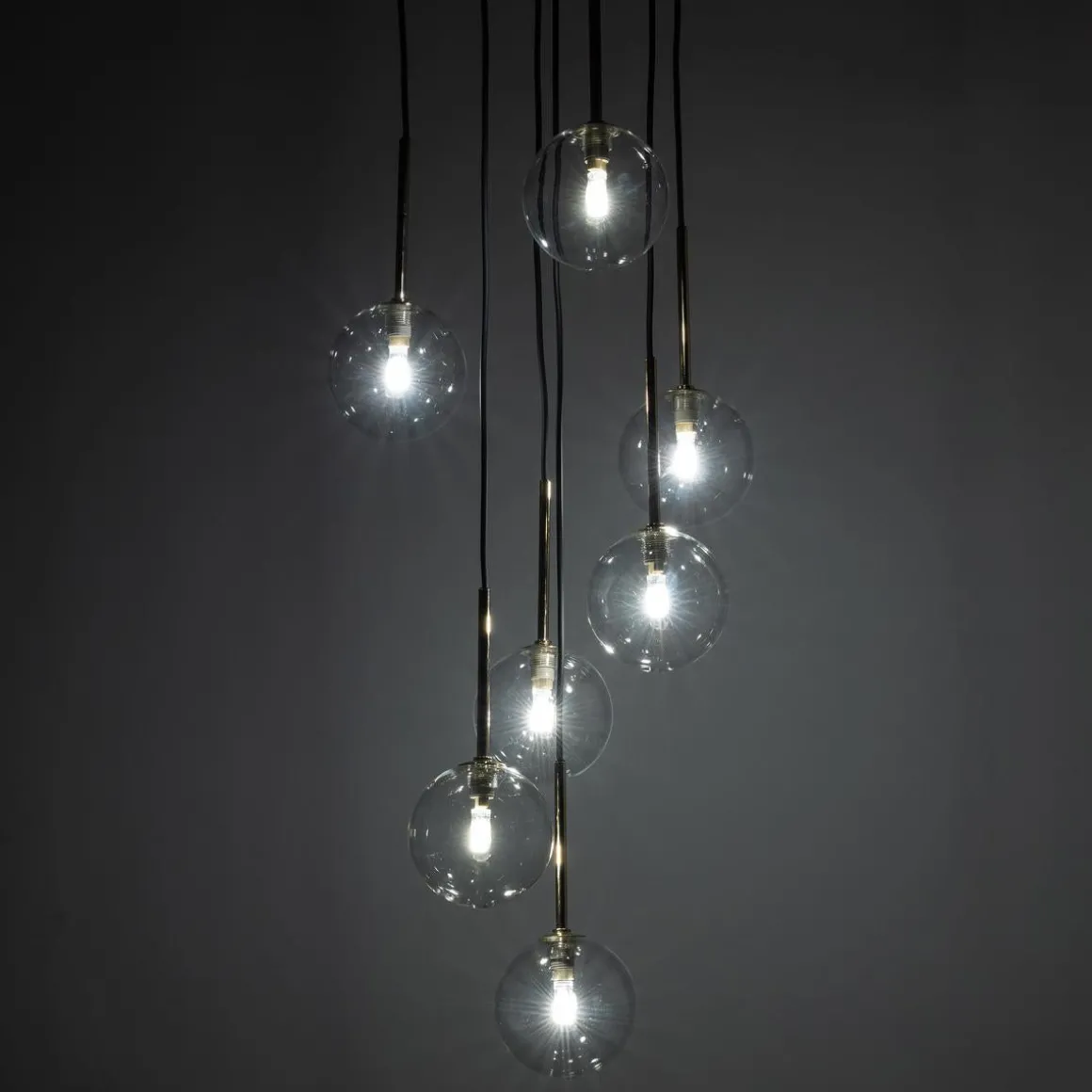 NILOS-lamper er en familie av designer-pendellamper med et moderne og elegant utseende. De er preget av gjennomsiktige glasskjermer som gir utmerket lysspredning. Hver lampe har også en gullhylse ved skjermen, som gir en luksuriøs aksent. Høyden på lampene kan justeres etter dine preferanser, da pendlene med lampeskjermer skaper kaskader av forskjellige lengder. Høydejustering gir oss muligheten til å skape et unikt og individuelt utseende av interiøret vårt.