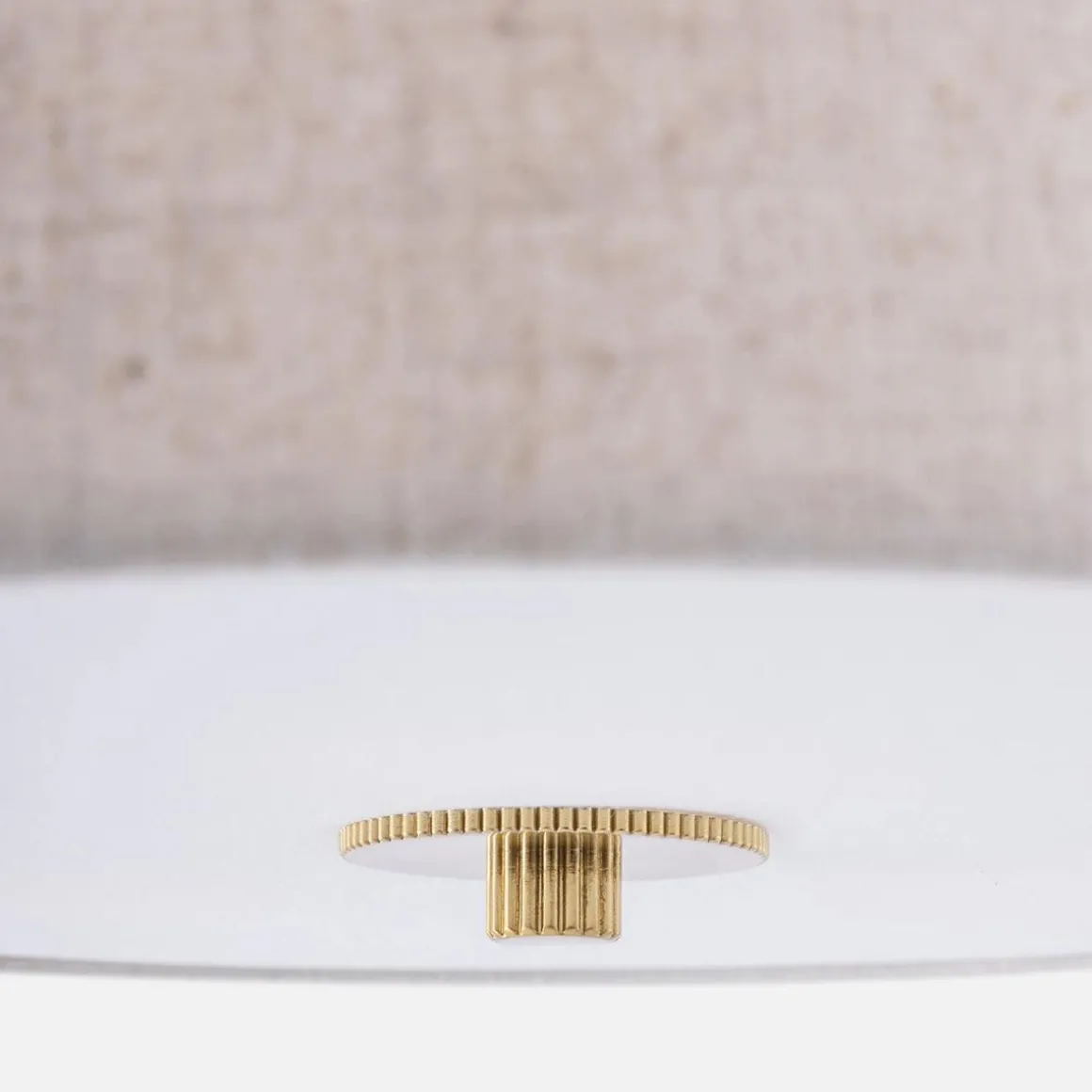 Noah er håndlaget av farget lin, noe som skaper en sofistikert og dekorativ taklampe. Lampen er kombinert med en ekte messingsdetalj, og stoffet har et livlig mønster med en hvit blender laget av det samme linmaterialet i bunnen for å spre et behagelig lys.