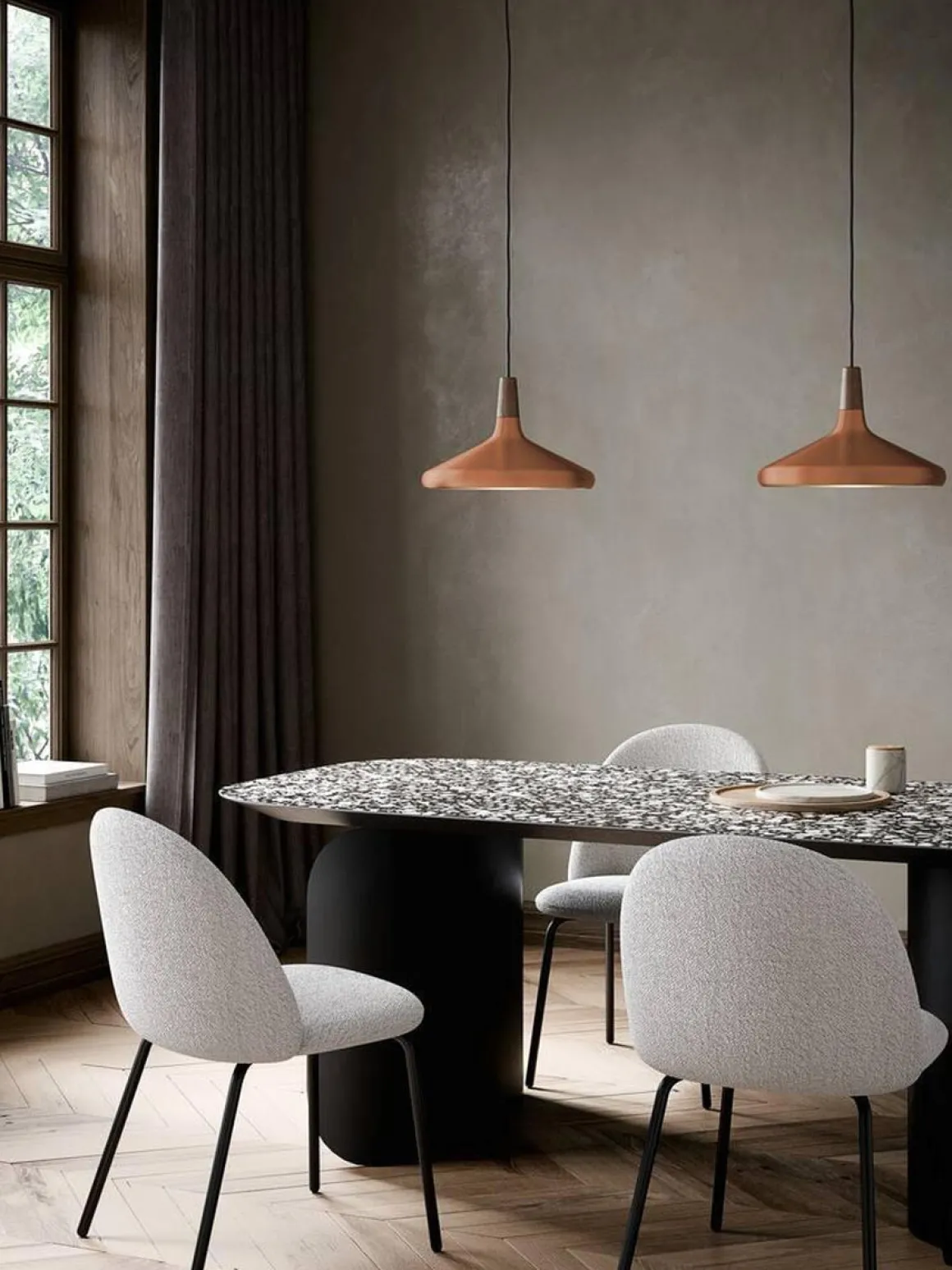 Nori er en familie som står sammen uten å være uatskillelig. Linjer, figurer og flater sikrer harmoni, og en umiskjennelig letthet skinner gjennom i alle designvarianter. Designet er både rankt og raffinert med sin eksklusive FSC-sertifiserte tretopp i oljet valnøtt, som er et av Nori-seriens kjennemerker. Den er enkel å plassere sammen med andre interiørelementer og flott å blande i ulike farger og størrelser. Duoen Bjørn+Balle står bak designet