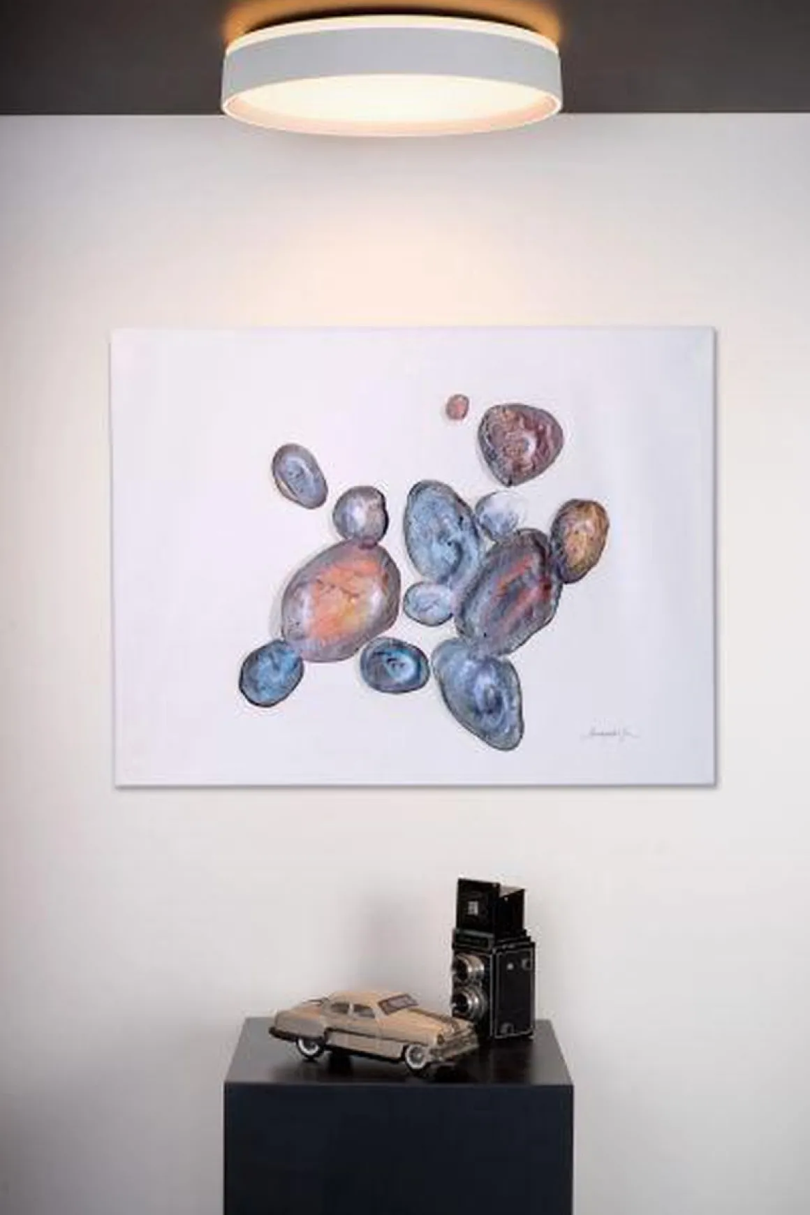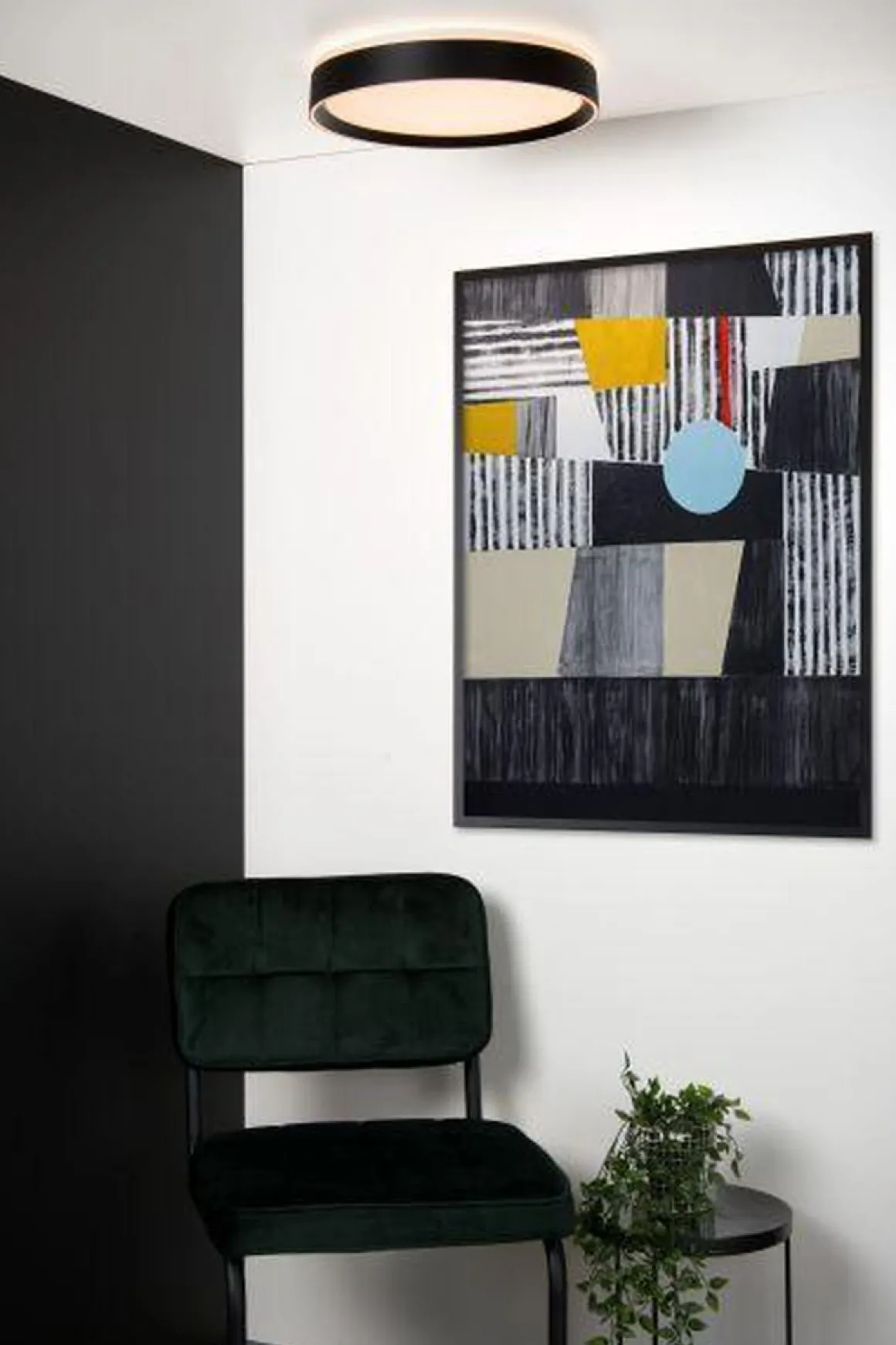 Nuria er en stilfull taklampe i sort, med integrert lys. Lampen er utstyrt med 3-stegs dimming, som gjør at du kan dimme lampen med en vanlig av/på-lysbryter i 3 nivåer.