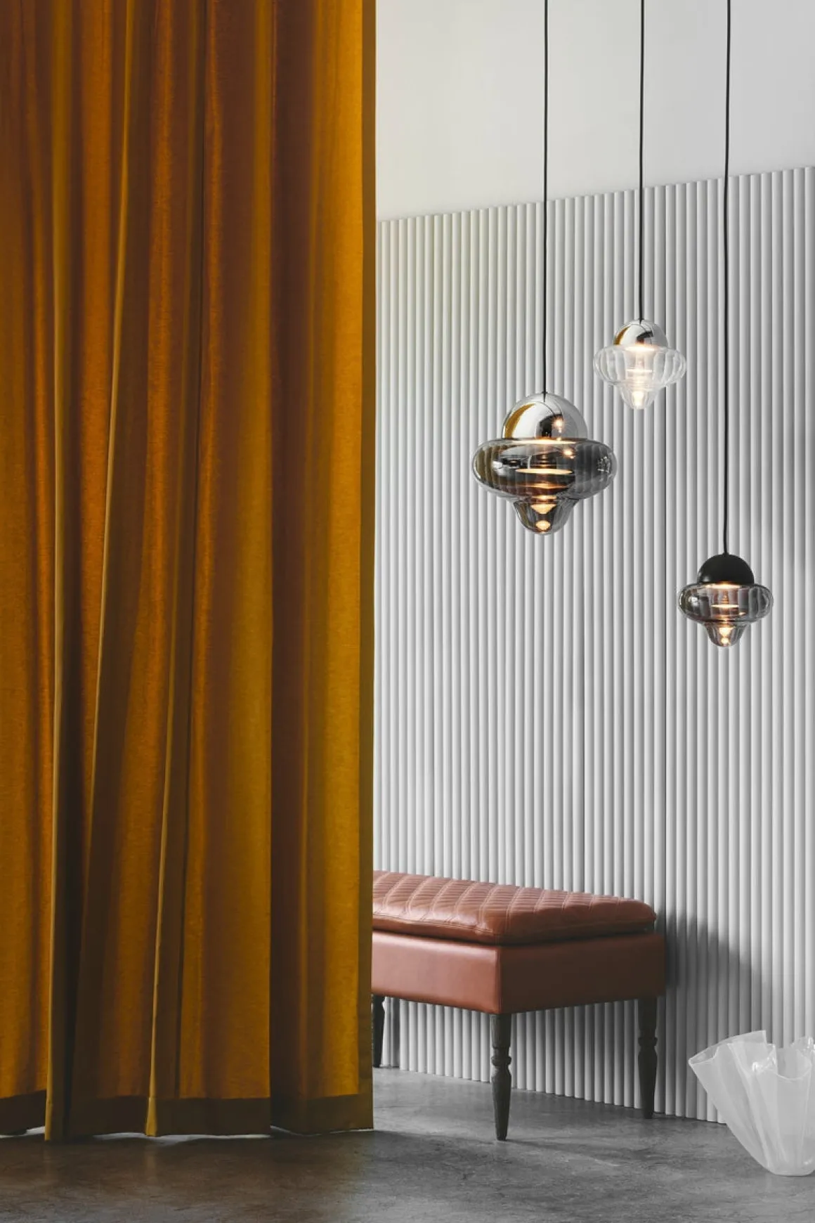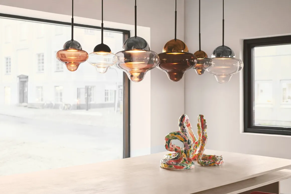 Nutty takpendel fra Design By Us er en vakker og iøyenfallende takpendel i glass. Du kan velge oppheng i sort, messing eller sølv så du finner den kombinasjonen som passer perfekt for deg. De har her brukt eikenøtten som inspirasjon til denne nye lampen. Den er litt nøtteaktig, og det er derfor de kaller denne nye taklampen Nutty. Denne lampen har integrert LED. Pendelkolleksjonen er basert på to størrelser, Nutty & Nutty XL.