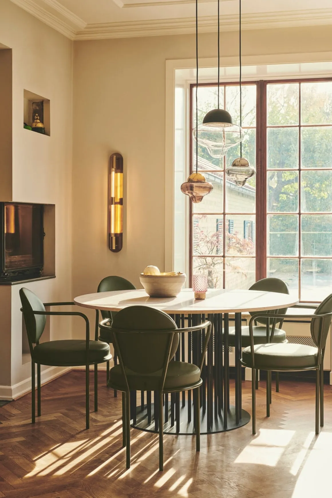 - Materiale: Munnblåst glasskuppel, belagt metall og integrert LED