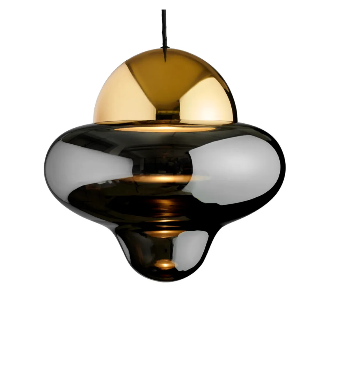 Nutty takpendel fra Design By Us er en vakker og iøyenfallende takpendel i glass. Du kan velge oppheng i sort, messing eller sølv så du finner den kombinasjonen som passer perfekt for deg. De har her brukt eikenøtten som inspirasjon til denne nye lampen. Den er litt nøtteaktig, og det er derfor de kaller denne nye taklampen Nutty. Denne lampen har integrert LED. Pendelkolleksjonen er basert på to størrelser, Nutty & Nutty XL.