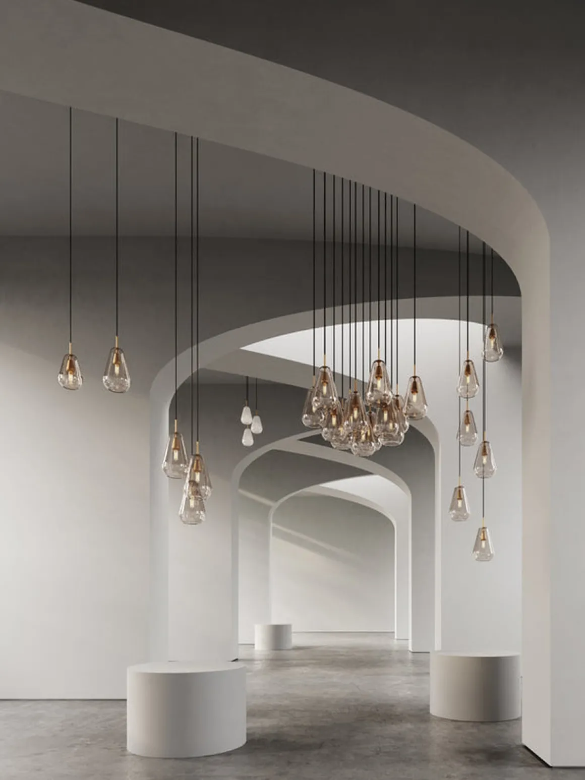 Nydelig taklampe laget av materialer av høyeste kvalitet av dyktige håndverkere. Uttrykket er enkelt og består av munnblåste dråpeformede glassvedheng. Ta med det unike nordiske lyset innendørs med Anoli 1 – Small.