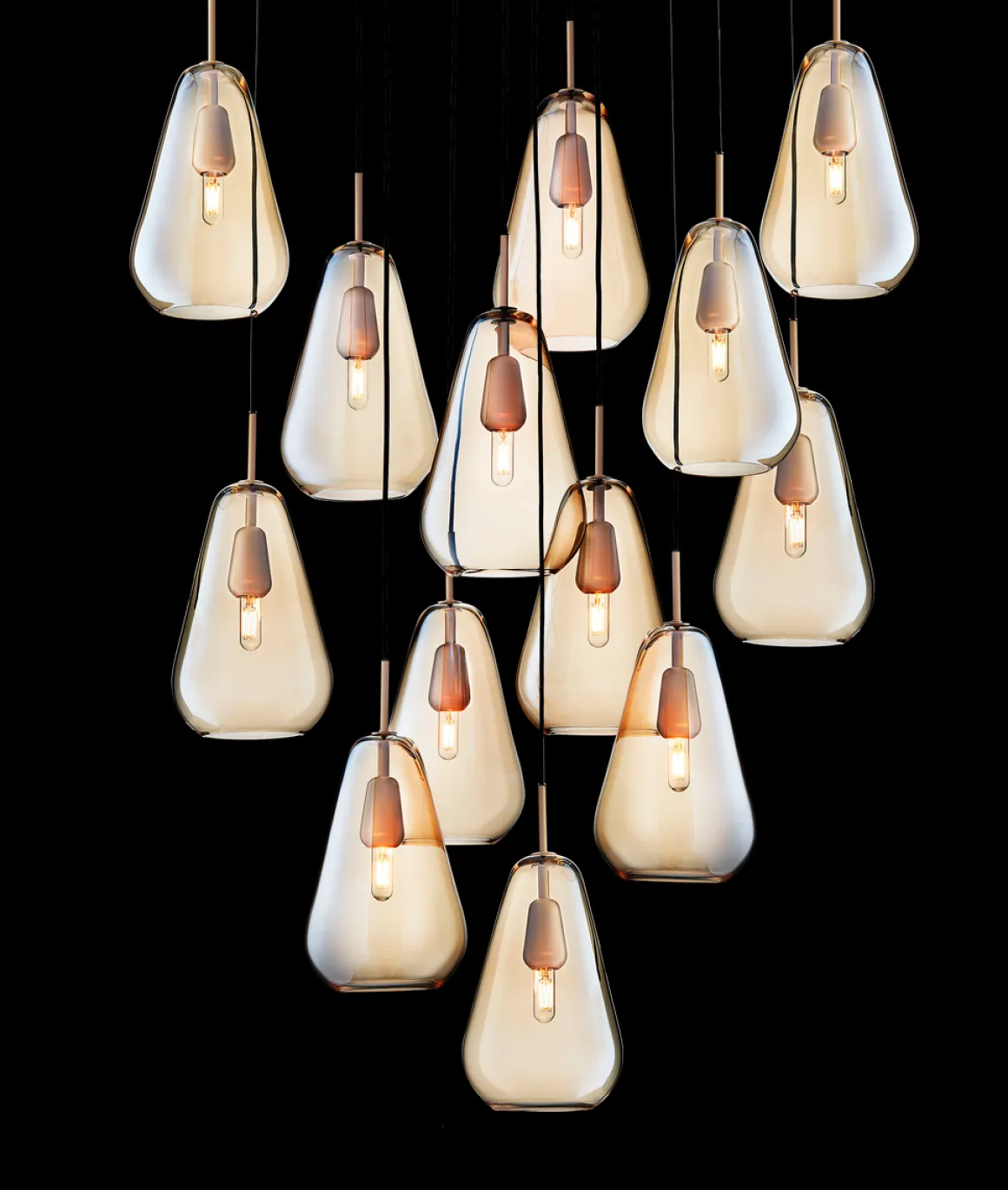 Anoli 13 Taklampe fra Nuura er laget av materialer av høyeste kvalitet, av dyktige håndverkere. Uttrykket er enkelt og består av munnblåste dråpeformede glassvedheng. Ta med det unike nordiske lyset innendørs med Anoli 13 taklampe.