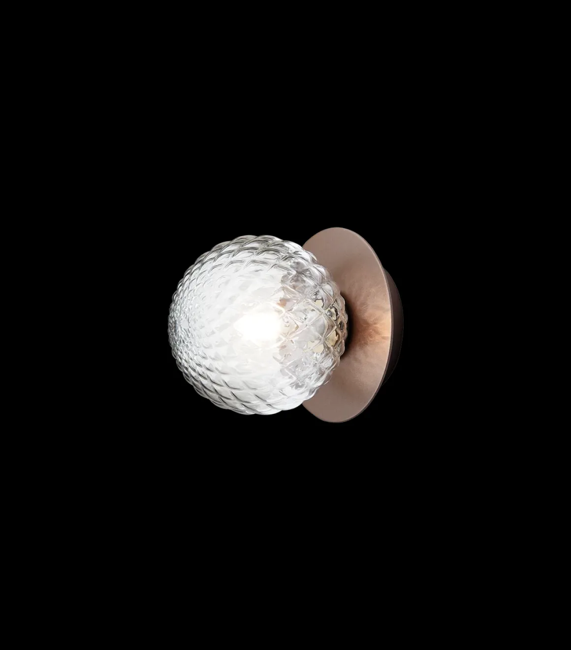 Liila 1 er en enkel lampe som ser vakker ut på veggen eller i taket. Den er enkel i sin form, og består av en tynn rund metallplate og en unik, munnblåst glasskuppel. Liila 1 passer til mindre rom, bad og til entréen.