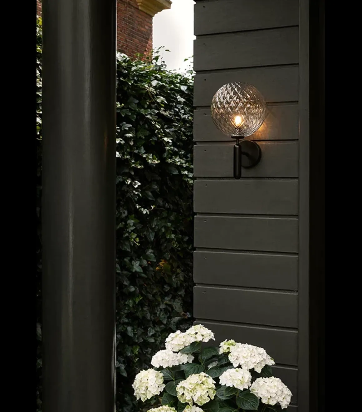 Liila Wall Outdoor er en forlengelse av Liila-kolleksjonen og designet for å monteres ute på yttervegger. Utelampen er konstruert med en veggmontert bakplate og en slank arm for å støtte den tynne, runde metallplaten og den munnblåste glasskulen som lyset reflekteres fra. Liila Wall Outdoor gir en minimal, organisk detalj til hjemmet.