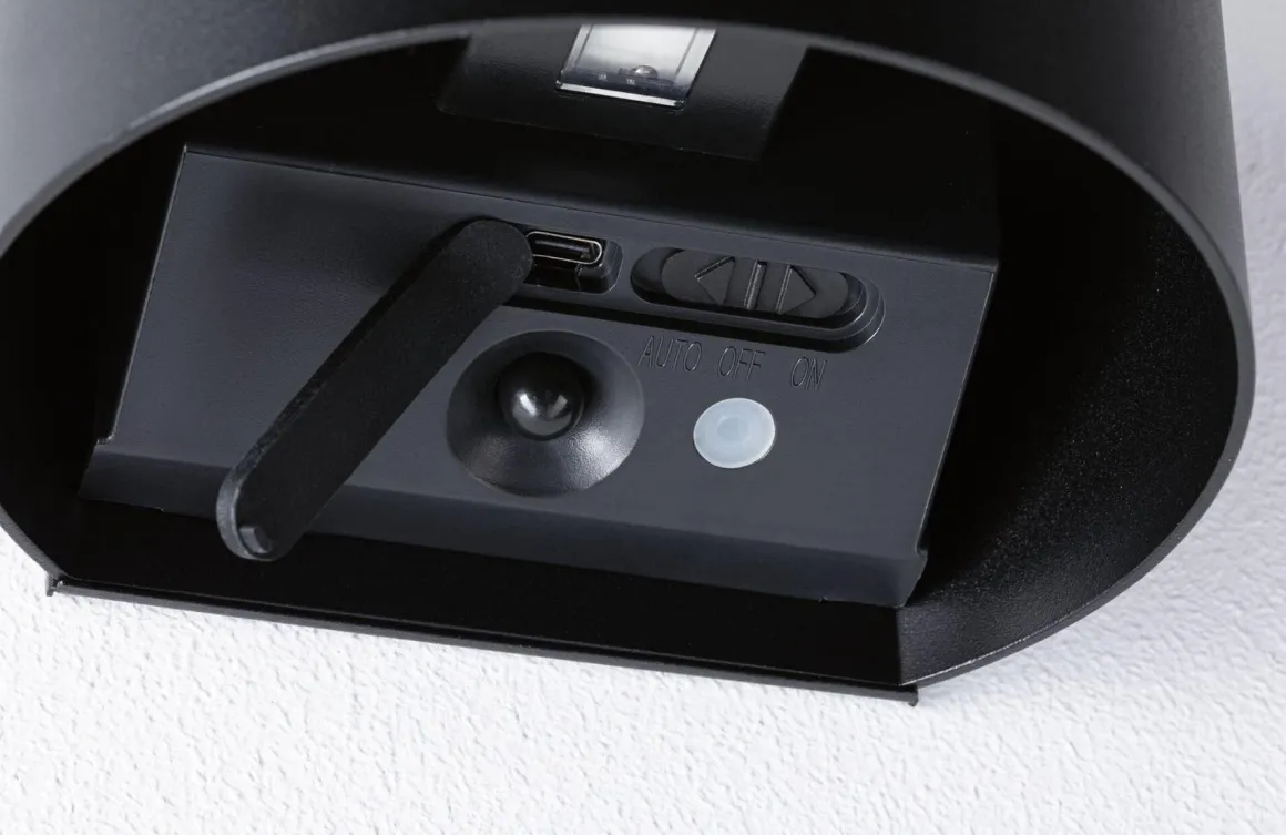 Den oppladbare vegglampen Nyara med integrert bevegelsessensor er et perfekt valg der det er behov for et funksjonelt tilleggs- eller orienteringslys. Siden det ikke er behov for stikkontakt, kan den brukes i stuen, gangen og – takket være IP44-beskyttelsen – til og med på badet, på balkongen eller på en yttervegg. Lampen har tre innstillingsalternativer: På, Av og Auto. Når den er slått på, sender lampen kontinuerlig ut et varmt hvitt lys med 40 % lysstyrke. I Auto-modus aktiveres den skumringsstyrte bevegelsessensoren, og lyset bytter automatisk til 100 % lysstyrke for maksimal komfort og sikkerhet. Lystiden i Auto-modus er rundt 8 timer og 23 timer i På-modus. Lampen deaktiveres etter 30 sekunder hvis det ikke registreres bevegelse eller omgivelseslysstyrken overstiger 30 lux. Den medfølgende USB-C-ladekabelen garanterer rask ladetid for det oppladbare batteriet på 6 timer. Som installasjonshjelp kan den magnetiske bakplaten limes eller boltes til veggen. Dette sikrer at lampen raskt og enkelt kan tas ut for lading.