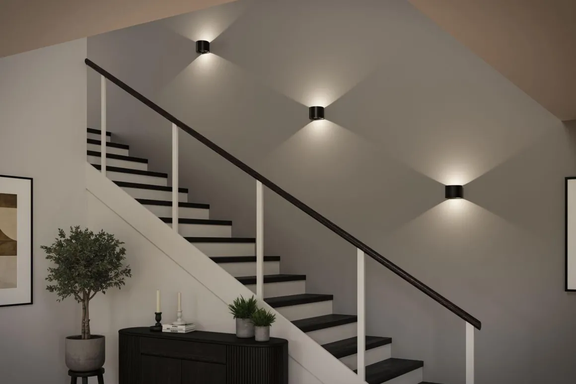 Nyara rund oppladbar vegglampe opp/ned lys med sensor