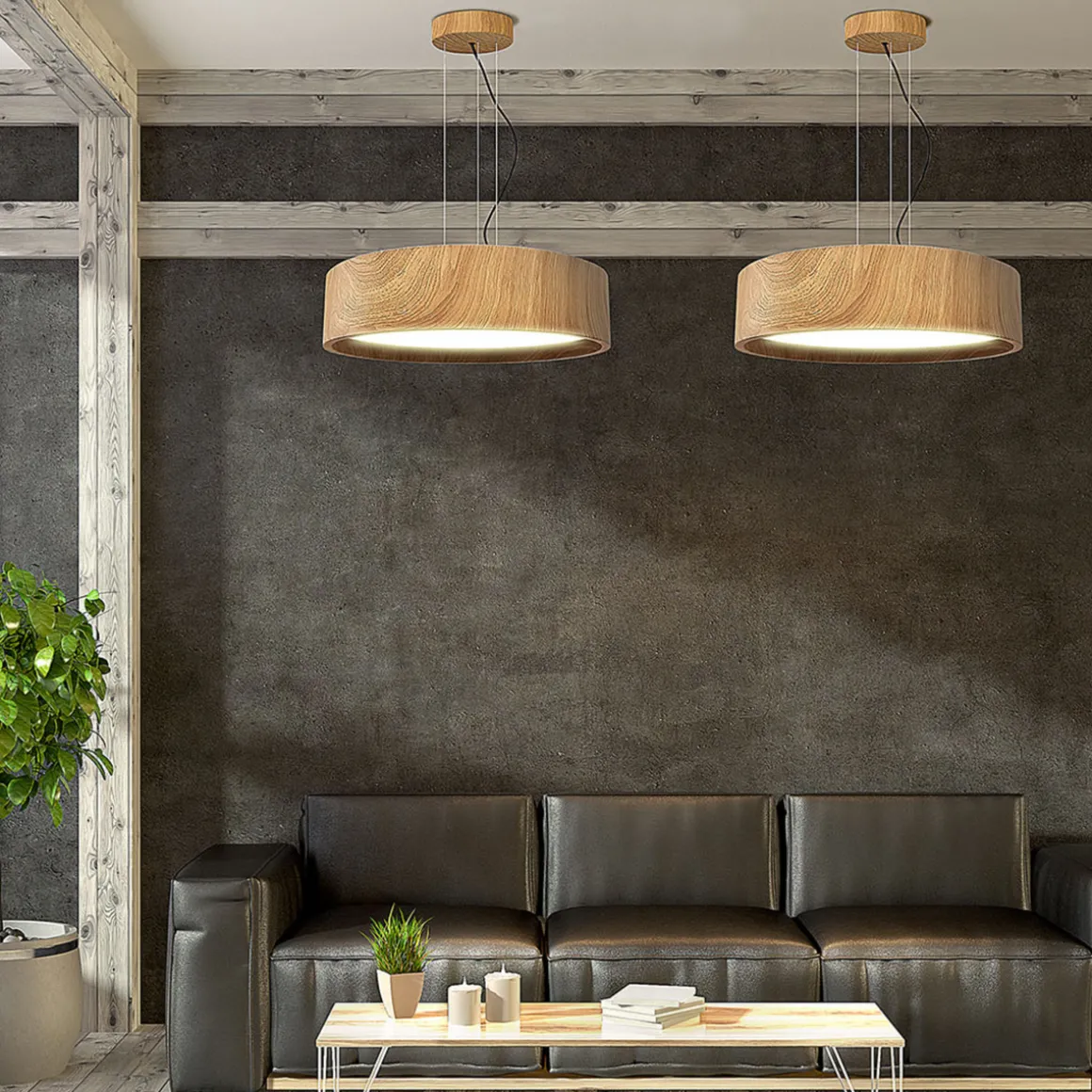 Oak har stilig minimalistisk form, med en kropp av tre som gjør det fascinerende. Oak har innebygde lysdioder som sparer strøm, eliminerer behovet for erstatningspærer og gir utmerket lys. Det gjør Oak til et til en nydelig lampe for hjemmet. En funksjonell og stilig taklampe med fokus på ren skandinavisk stil. Modellen finnes i 50 og 70 centimeter i diameter.