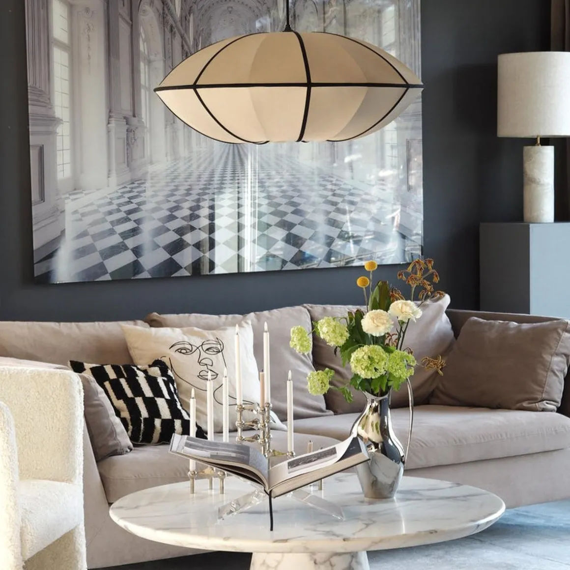 Lampene fra Oi Soi Oi er perfekte lamper på soverom, i stuen over salongbord eller over spisebord. Er du heldig og ha stukkatur og rosett i taket er de aldeles vakre å ha hengende fra stukkaturen midt i rommet. De vil gi godt med lys til rommet på en behagelig måte.