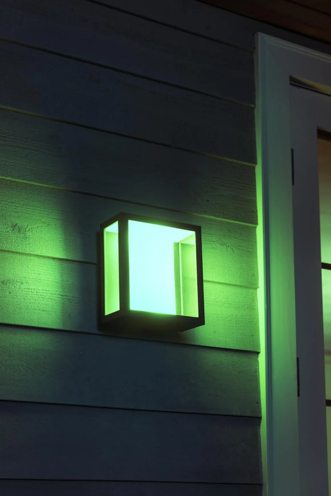 Nå kan du utvide Hue utendørs. Impress-vegglampen kan kobles til din eksisterende Hue bridge for å nyte alle funksjonene slik som kontroll og planlegging av hjemmet når du er ute, men er også egnet til å skape en flott atmosfære. Hue bridge ikke inkludert.