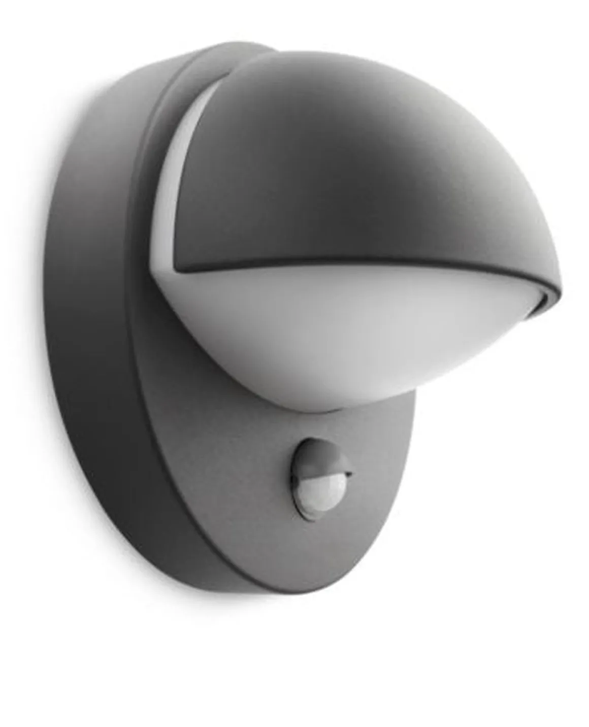 Gi hagen en moderne stil. Denne Philips myGarden-vegglampen i antrasitt med bevegelsessensor er iøynefallende med sin stilige form. Den kaster et energibesparende og varmt hvitt lys og gir deg en varm velkomst hver gang du kommer hjem