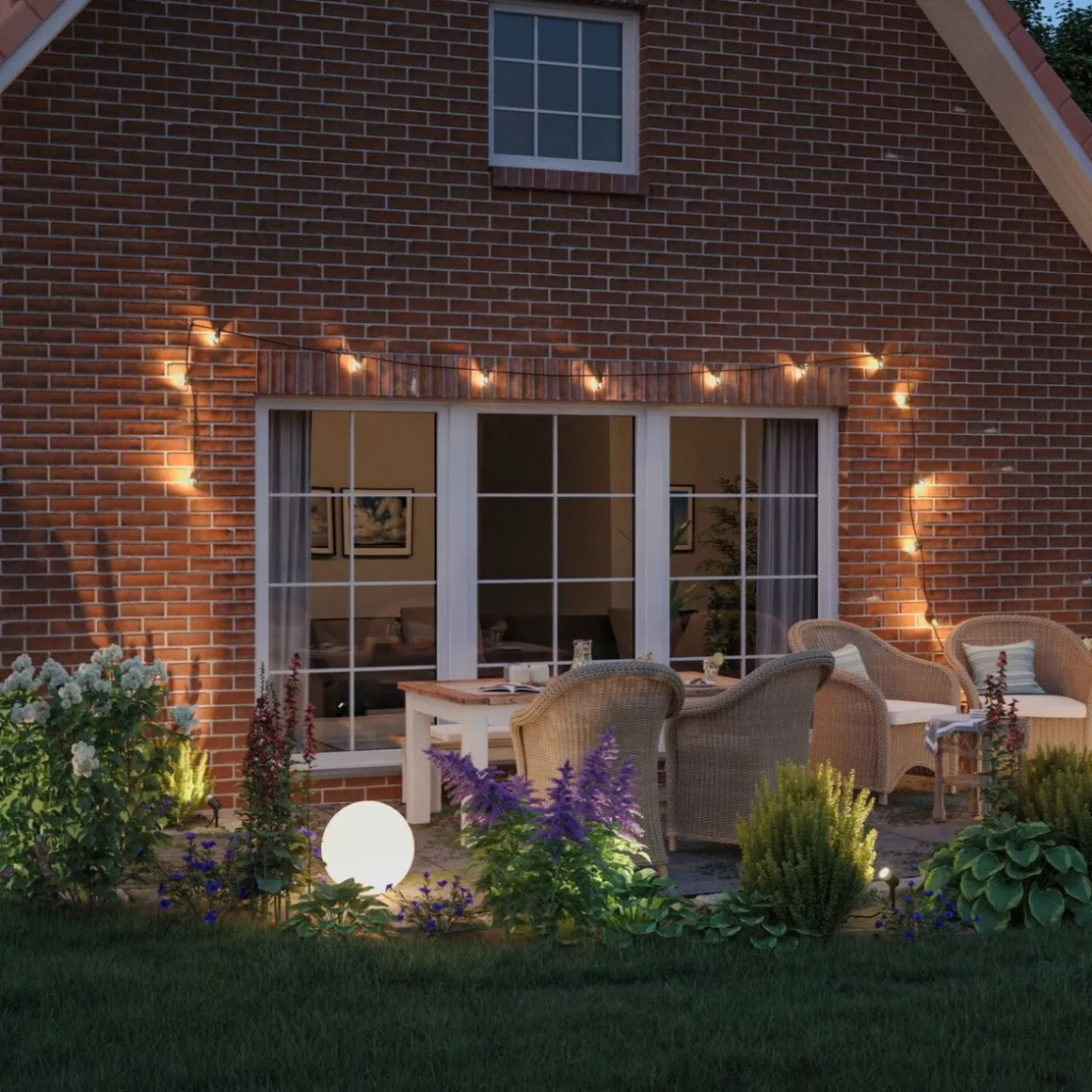 Plug & Shine lyskjede med varmt hvitt lys skaper den perfekte atmosfæren utendørs og kan fleksibelt vikles rundt rekkverk, møbler og planter. Med transformatorer, kontakter og tilleggsarmaturer fra Plug & Shine-serien kan du sette sammen en individuell belysningsinstallasjon for uterommene dine.