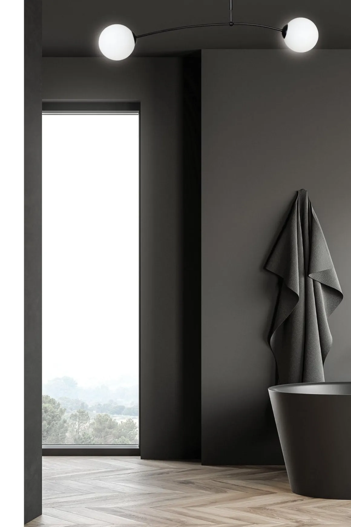 Pregos er en dekorativ lampeserie som finnes i 2 forskjellige farger sort eller hvit med hvite glass kupler.