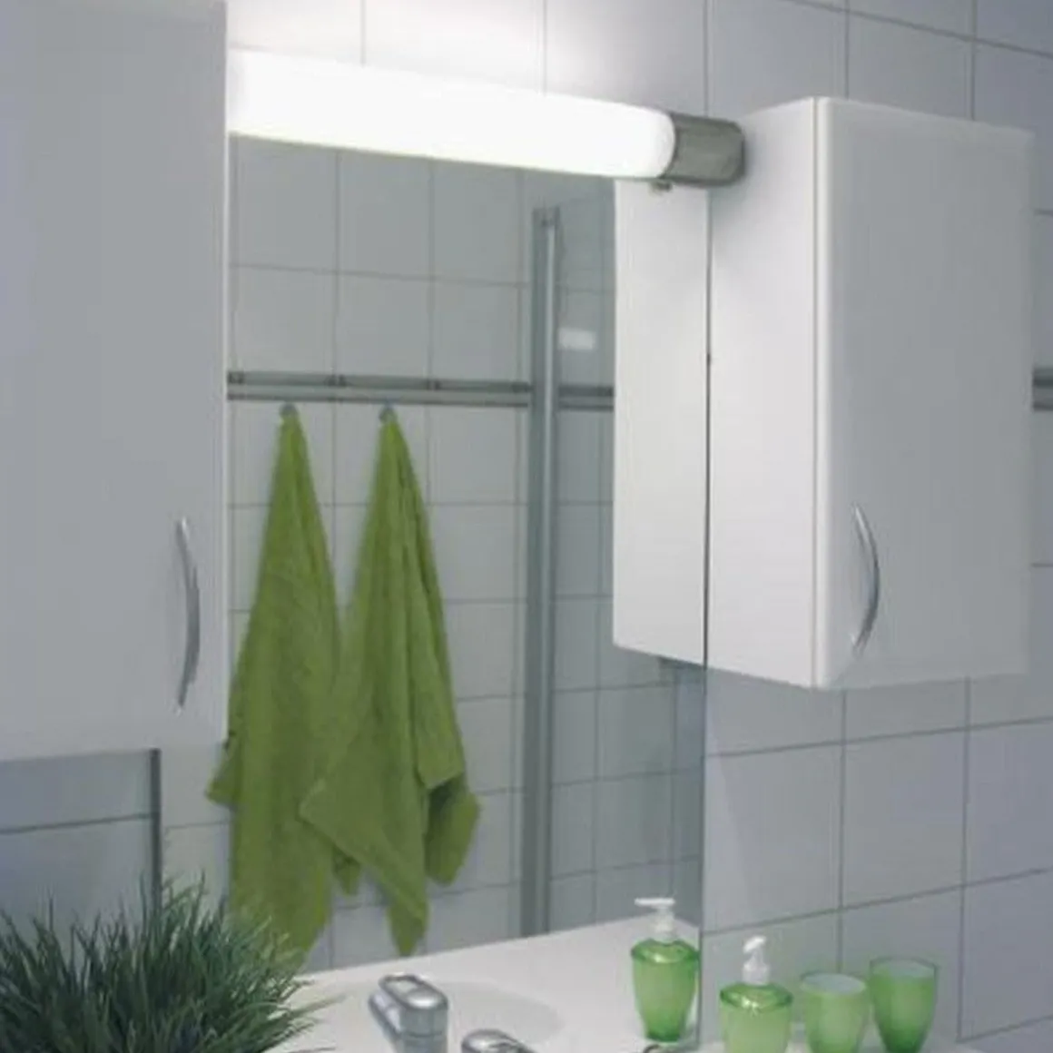 Stilren baderomsarmatur designet av Hallvard Jakobsen. Lampen kan monteres vertikalt eller horisontalt.