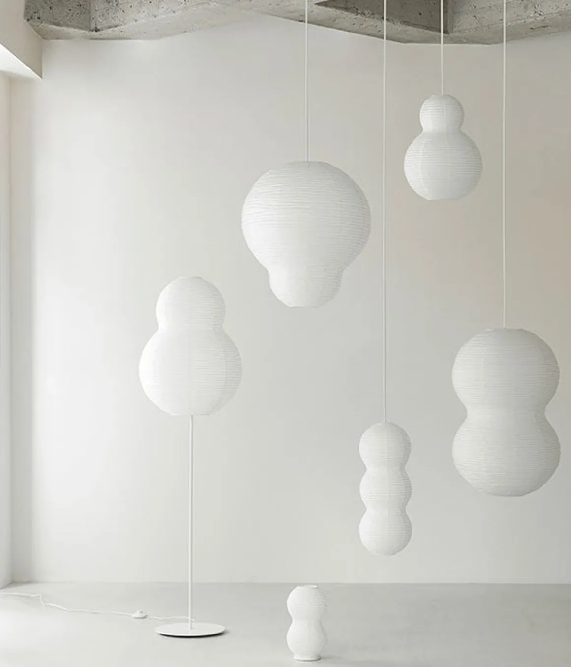 Puff er en serie rispapirlamper. Designet er voluminøst og lett med ulike varianter og størrelser som passer til både mindre og større miljøer. Lampen leveres uten oppheng.
