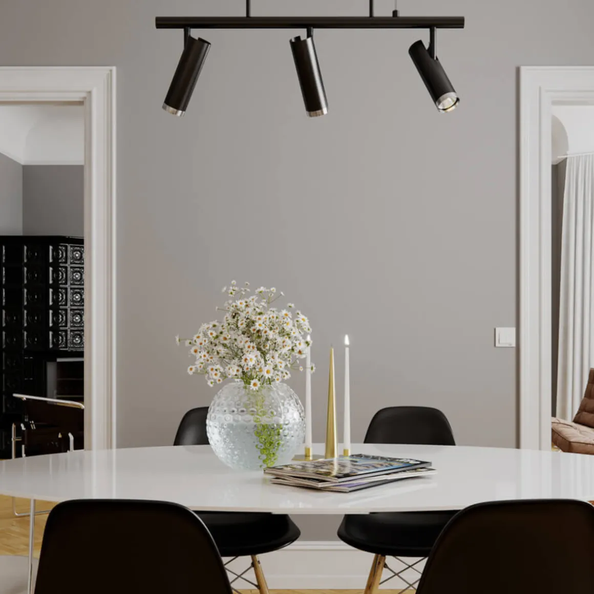 Leter du etter en stilig taklampe som gir deg fleksibilitet og mulighet til å skape et personlig preg i hjemmet ditt? Da er taklampen Puls Bar det perfekte valget for deg. Denne moderne taklampen er designet med tre retningsbestemte spotlights på en fleksibel skinne, som gir deg muligheten til å justere lysretningen og fokusere det akkurat der du vil ha det.