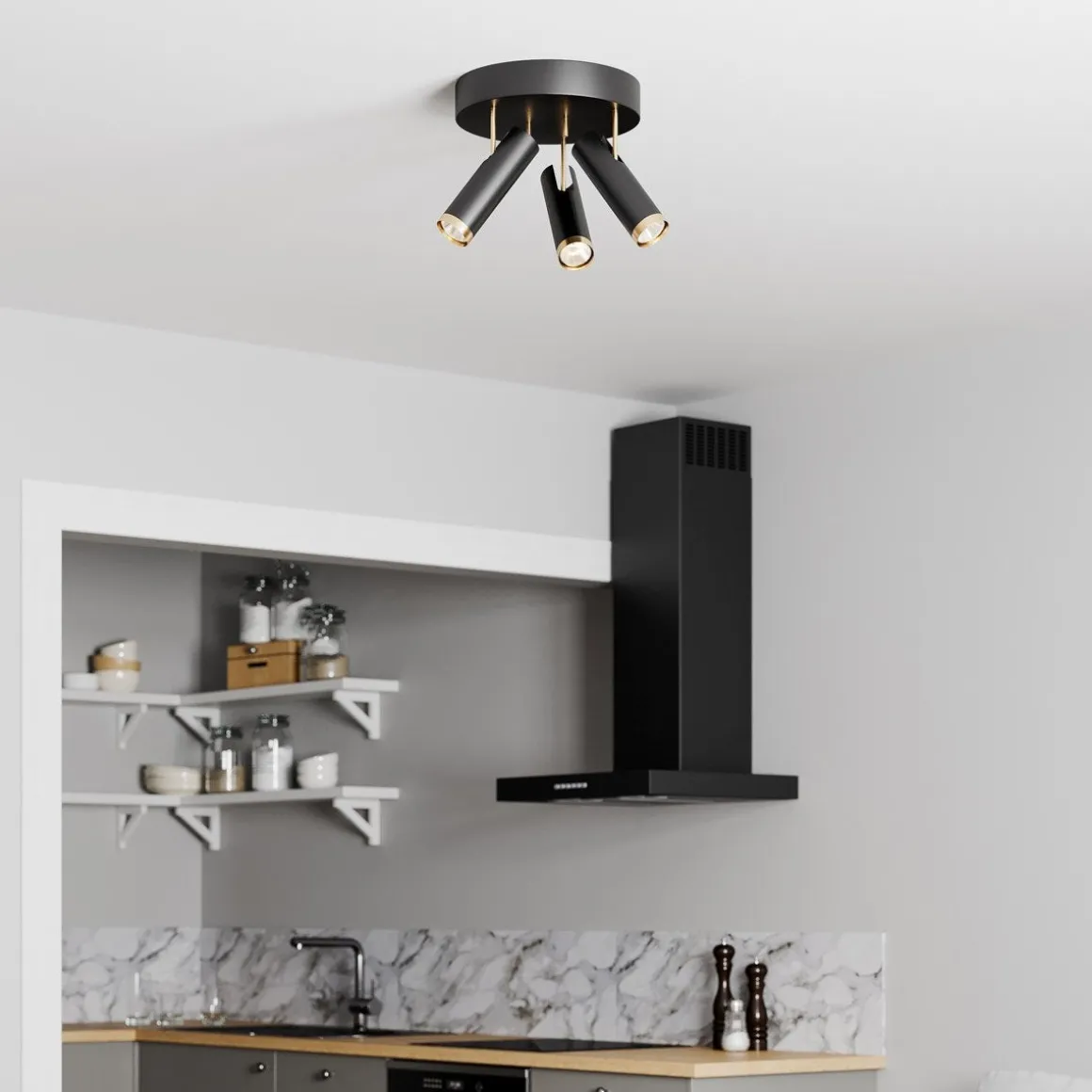 En moderne spotlight med tre bevegelige spoter i sort og gullfarget metall som passer fint i entreen, kjøkkenet og stuen. Takspoten gir et luksuriøst sett med lamper som du kan justere dit du vil for å skape et bestemt lysskinn mot forskjellige gjenstander. Når du kjøper takspoten, bør du også kjøpe til tre lyskilder med GU10-sokkel. Puls-takspot er enkel å montere, sitter stødig på plass og gir et effektivt og behagelig lys.