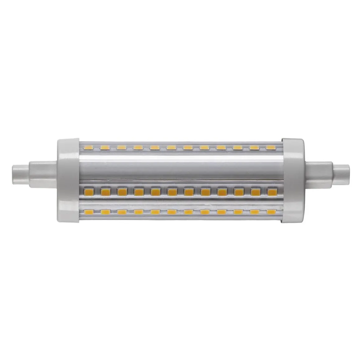 Den gjennomsiktige 15 W SLV SMD LED-lyskilden med R7S 118 mm-sokkel og QT DE12-form kan dimmes, har en CRI -verdi på 90, 800 Lumen og en levetid på 25 000 timer. Denne versjonen har en strålevinkel av 330 ° og 3000 Kelvin.