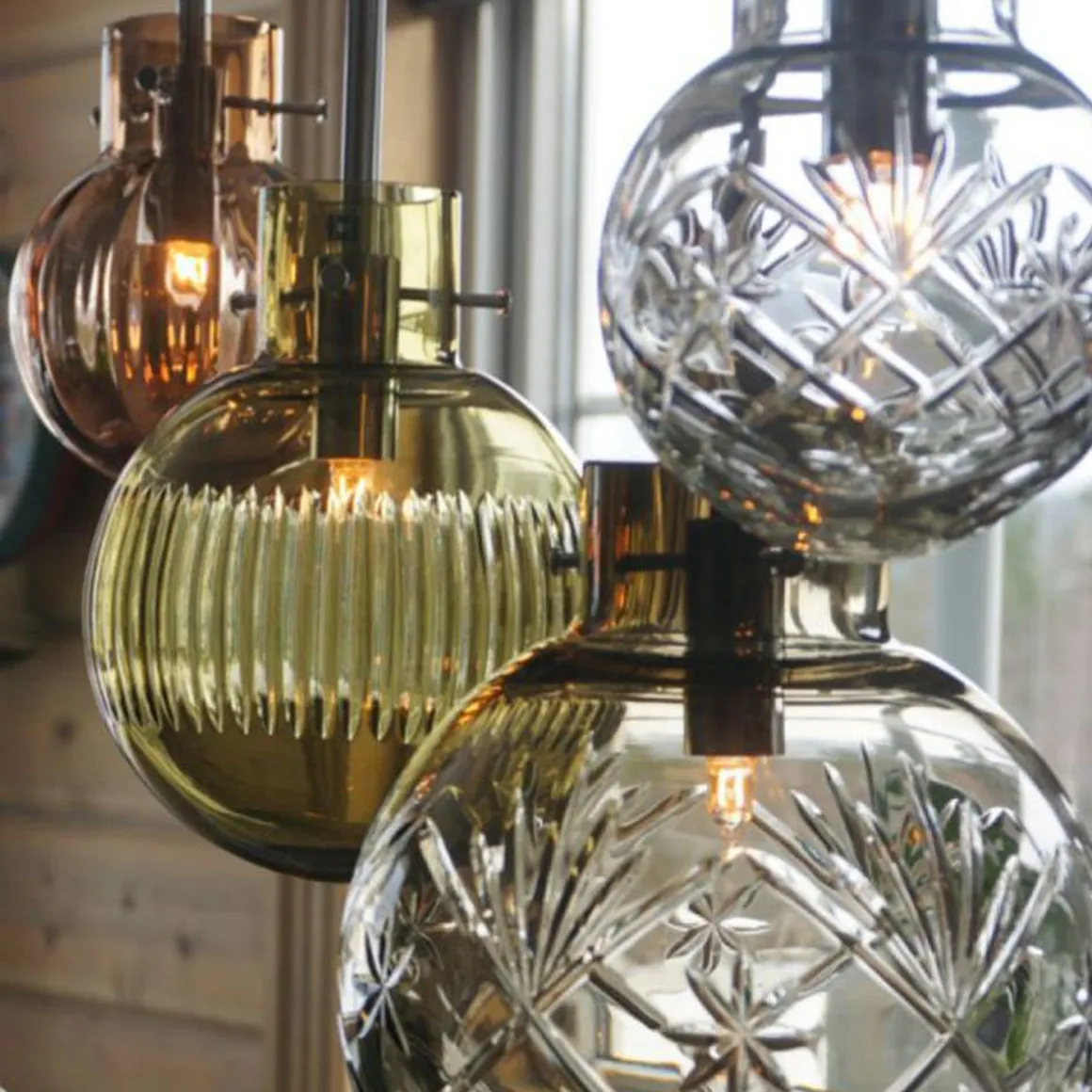 Interiørstylisten Renate Larsen Lorentzen har valgt den perfekte kombinasjonen av krystallkuler til nettopp sin hytte. Hun har gått for de klassiske slipmønstrene Finn, Skjær og Optikk i fargene klar, kakao og oliven. Nå kan du også få den lekre stilen til Renate med hennes selvkomponerte krystallkulelampe Rav.