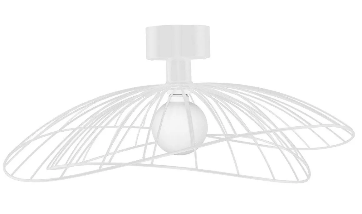 Myk og grafisk kombinert tak- / vegglampe Ray i matt hvittlakkert metall som, som et strøk, er korrugerte i ytterkanten. Lampen leveres med en takfeste og en veggfeste, samt en 200 cm lang gjennomsiktig kabel for de som ønsker å montere den på veggen