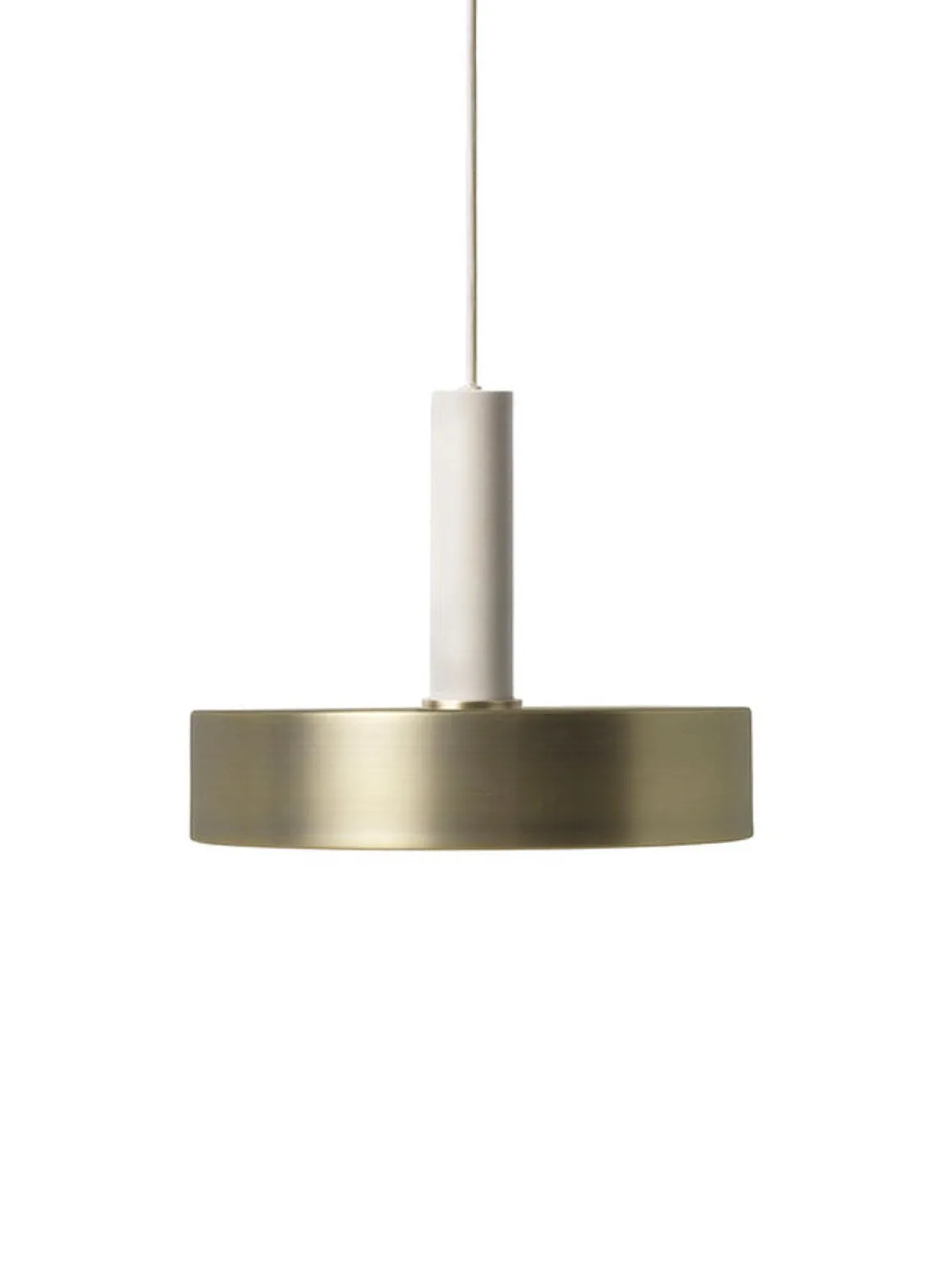 Med Collect serien fra Ferm Living kan du sette sammen din helt egen lampe! Du kan fritt velge sokkel og lampeskjerm både i størrelse, farge og materiale. Alle delene kan enkelt settes sammen. Skjermen er laget i messingbelagt metall og har en hvit innside, dette gir deg en lampe som avgir godt med lys ned i bordflaten.
