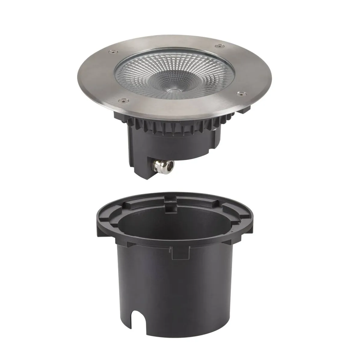 ROCCI 200 nedfelt gulvarmatur med firkantet el. rund skjerm av rustfritt stål og klart glassdeksel er utstyrt med en LED-modul. armaturn kan leveres med to blendingsformer og egner seg med beskyttelsesgrad IP 67 utendørs. Strømtilkoblingen skjer direkte til 230 V nettspenning. For å få en enkel montering er et innfelt festesett med i leveransen.