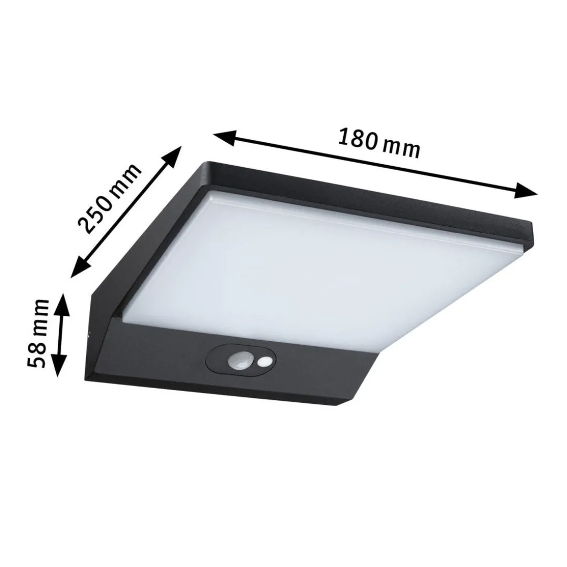 Solcelleveggsarmaturen med en effekt på 5 watt avgir behagelig, bredt lys på husvegger og inngangspartier. Takket være praktisk solenergiteknologi kan den plasseres hvor som helst og solen tar seg av resten – ingen strømforsyning nødvendig. Lyset slås automatisk på av den integrerte bevegelsessensoren, så snart noen nærmer seg.