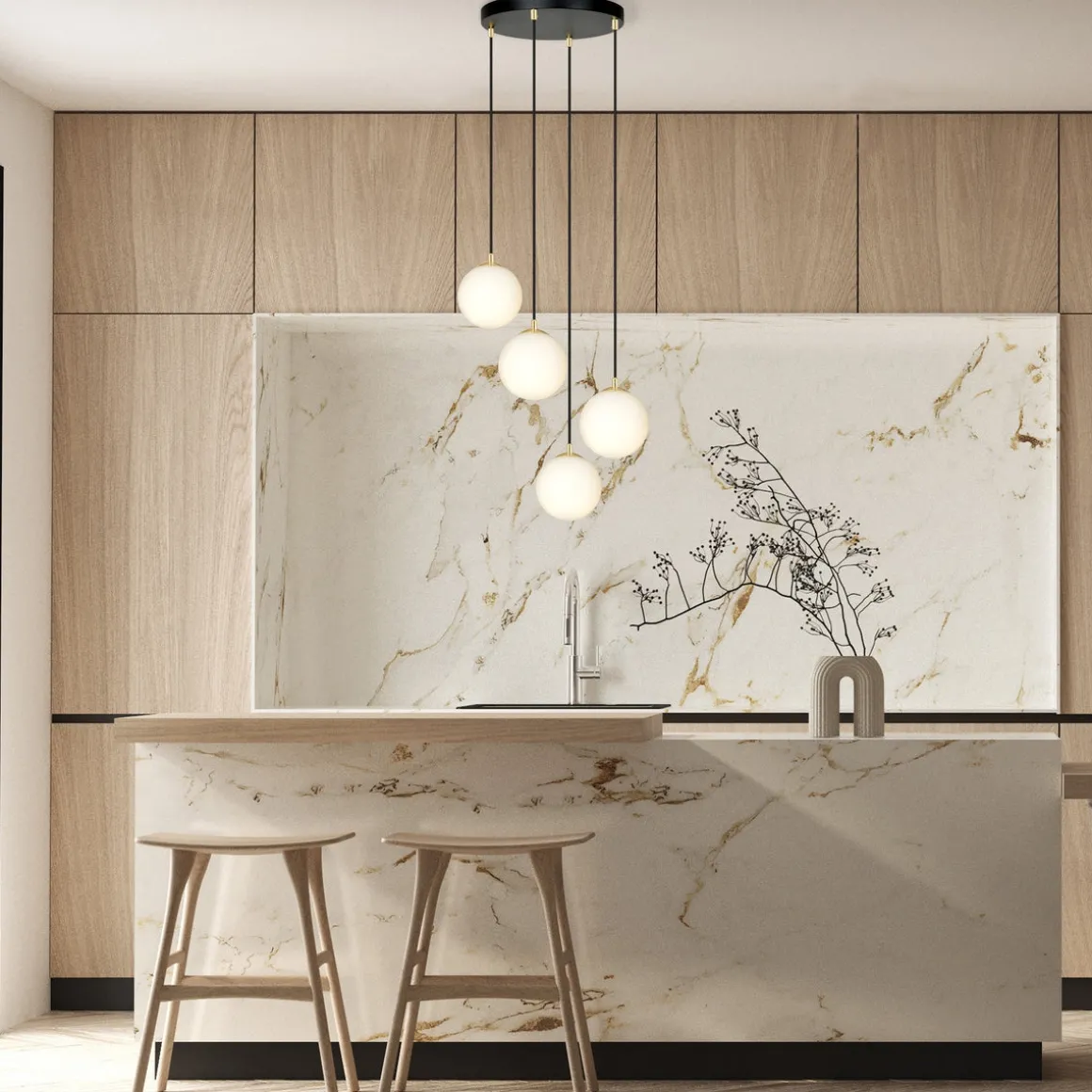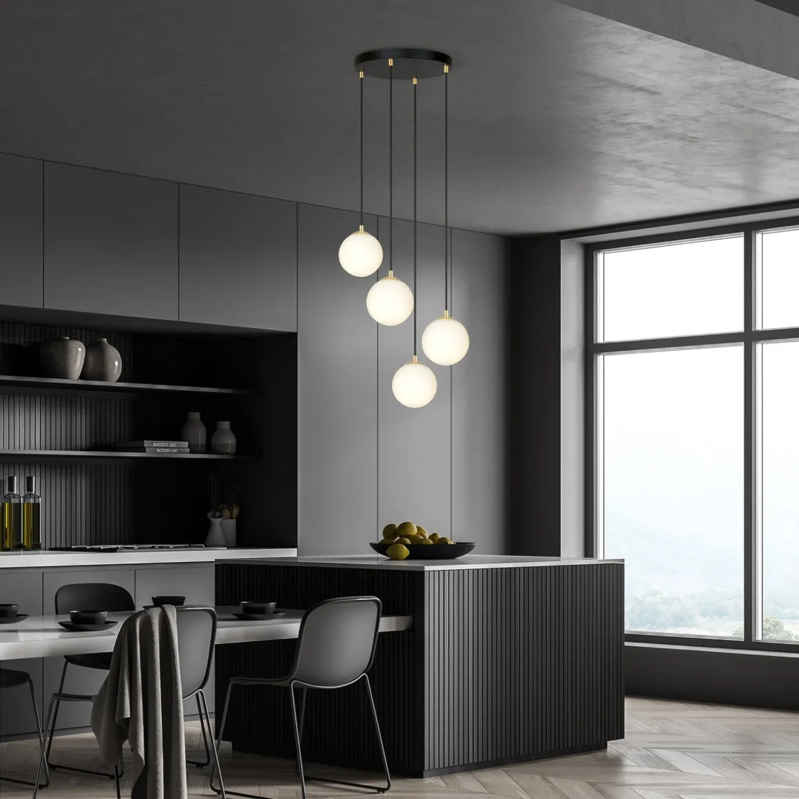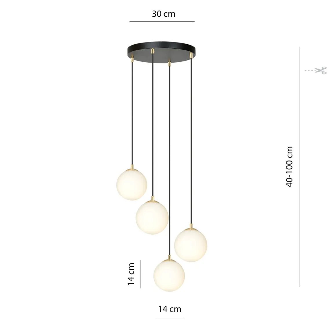 Royal takpendel 4-lys – Svart/Opal/Gullfarget