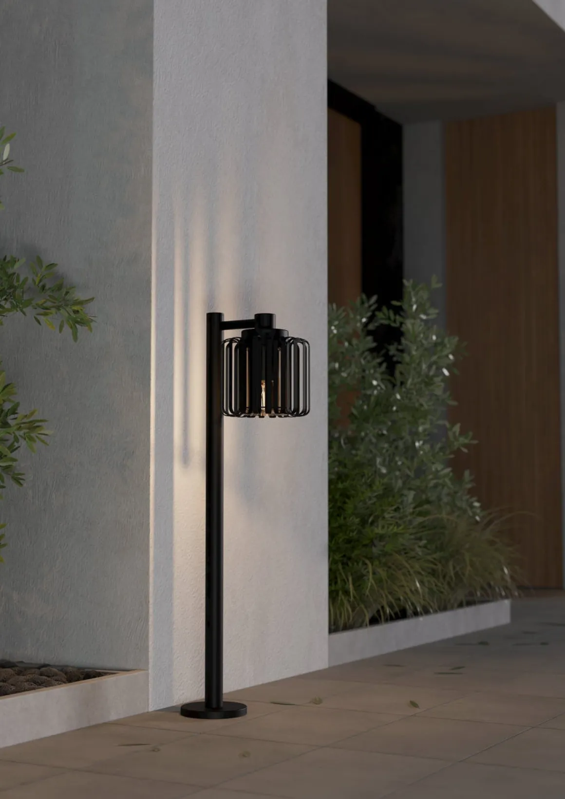 Selinus utendørs pullert har et svart metallhus med en sylindrisk buret lampeskjerm laget av metalllister. Lampeskjermen har en nedadgående posisjon og rommer en indre glassylinder. Det moderne burdesignet kompletterer stilfullt vegg lampens moderne utseende, samtidig som det gir en dramatisk visning av lys og skygge gjennom det utskårne designet. Produktet er egnet for utendørs bruk på grunn av sin IP65-beskyttelse mot støv og lavtrykks vannstråler. Med et elegant design smelter produktet inn i ethvert moderne uterom