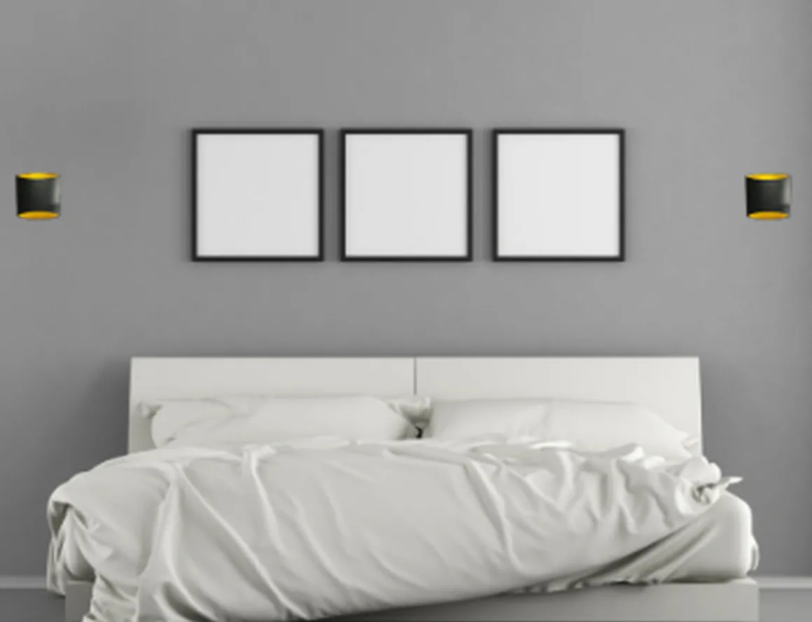 Dekorativ vegglampe i sort utførelse med gull innside. Innsiden lyses elegant opp
