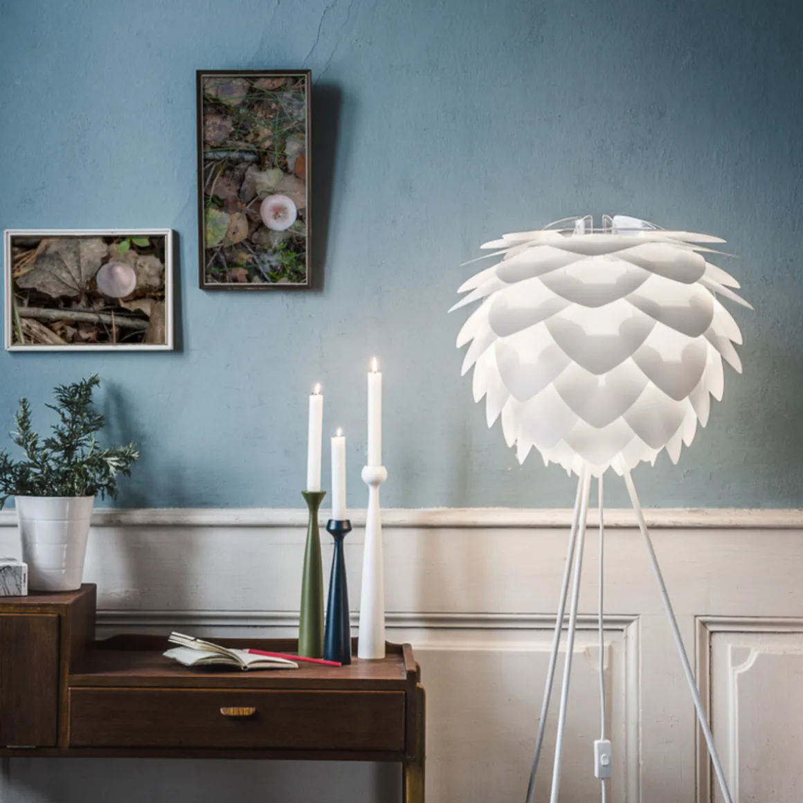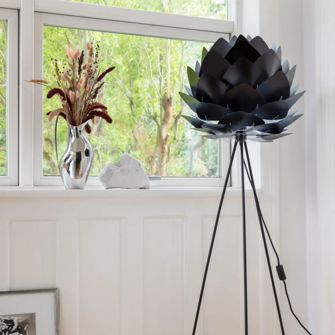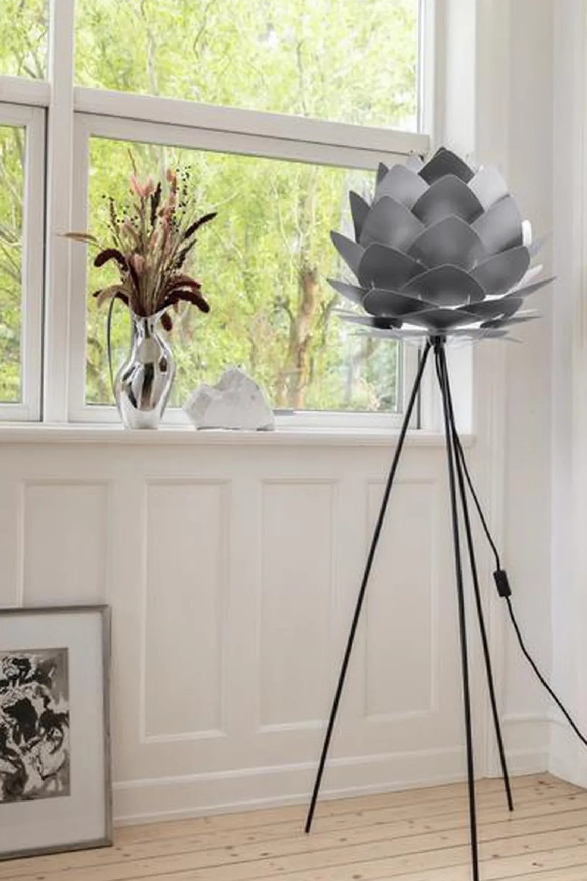 Silvia-lampeskjermen, med sine karakteristiske organiske, trekantede blad, er en moderne klassiker som passer inn i alle hjem. Klassisk hvit, moderne kobber og varm børstet messing er bare noen få av de nøye utvalgte fargene som Silvia er tilgjengelig i. Silvia kommer i to forskjellige størrelser og vil alltid lyse opp hjemmet ditt uansett farge.