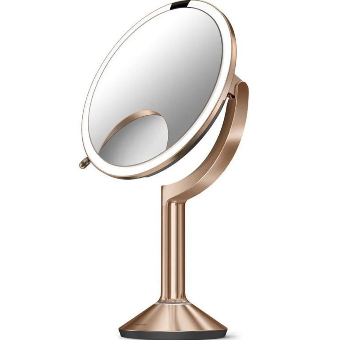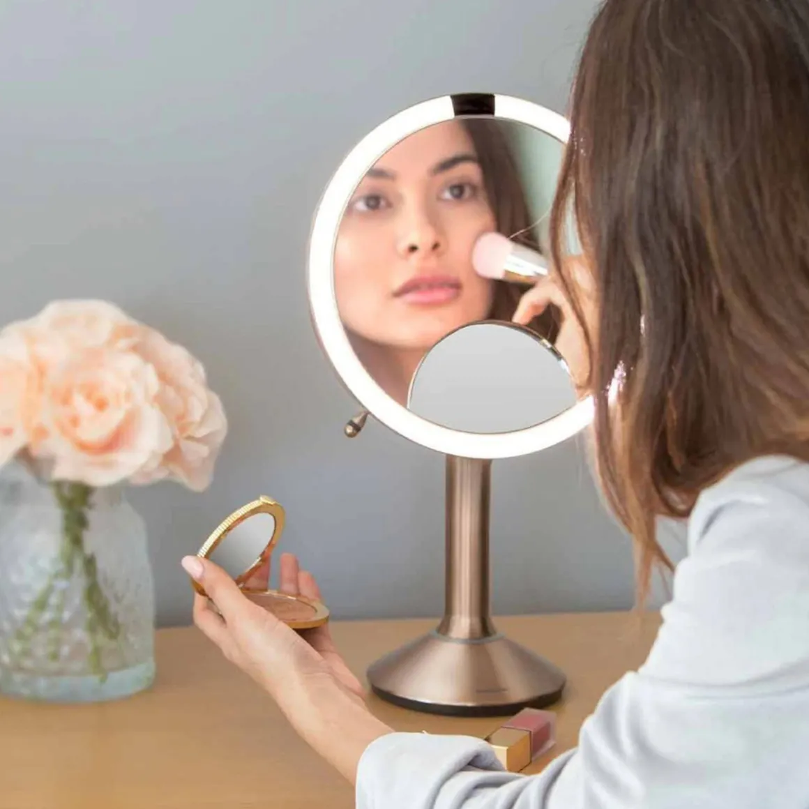 Vårt sensorspeil trio med berøringskontroll er som å ha tre speil i ett. En side har 5x forstørrelse, slik at du kan se hele ansiktet ditt i eksepsjonell detalj. Og med en rask, enkel flip til den andre siden får du en 1x sann visning med et lite 10x vindu nederst for detaljer, perfekt når du for eksempel skal bruke eyeliner – alle forstørrelsene du trenger for å gjøre sminkeprosessen enkel og knirkefri.