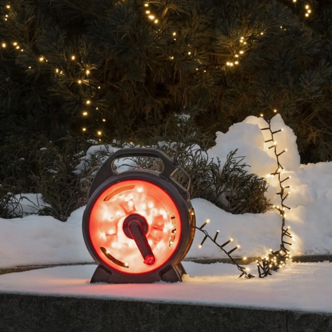 Gjør det enkelt å montere og ta ned lysene og er en fin plass for oppbevaring av slyngen. Like enkel å ta opp å montere neste år, uten en floke på tråden.