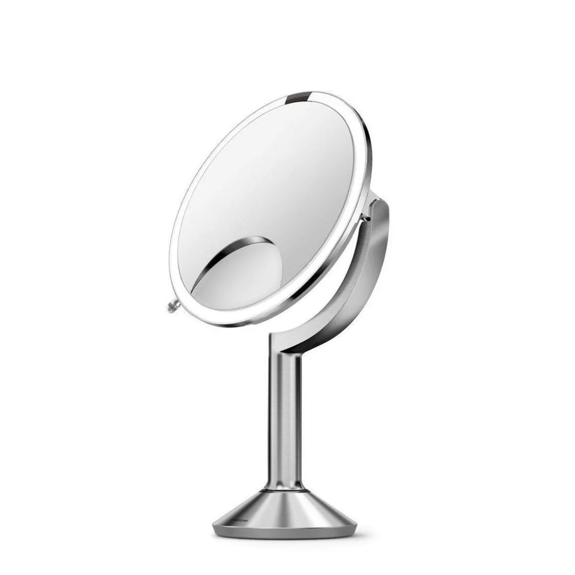 Vårt sensorspeil trio med berøringskontroll er som å ha tre speil i ett. En side har 5x forstørrelse, slik at du kan se hele ansiktet ditt i eksepsjonell detalj. Og med en rask, enkel flip til den andre siden får du en 1x sann visning med et lite 10x vindu nederst for detaljer, perfekt når du for eksempel skal bruke eyeliner – alle forstørrelsene du trenger for å gjøre sminkeprosessen enkel og knirkefri.