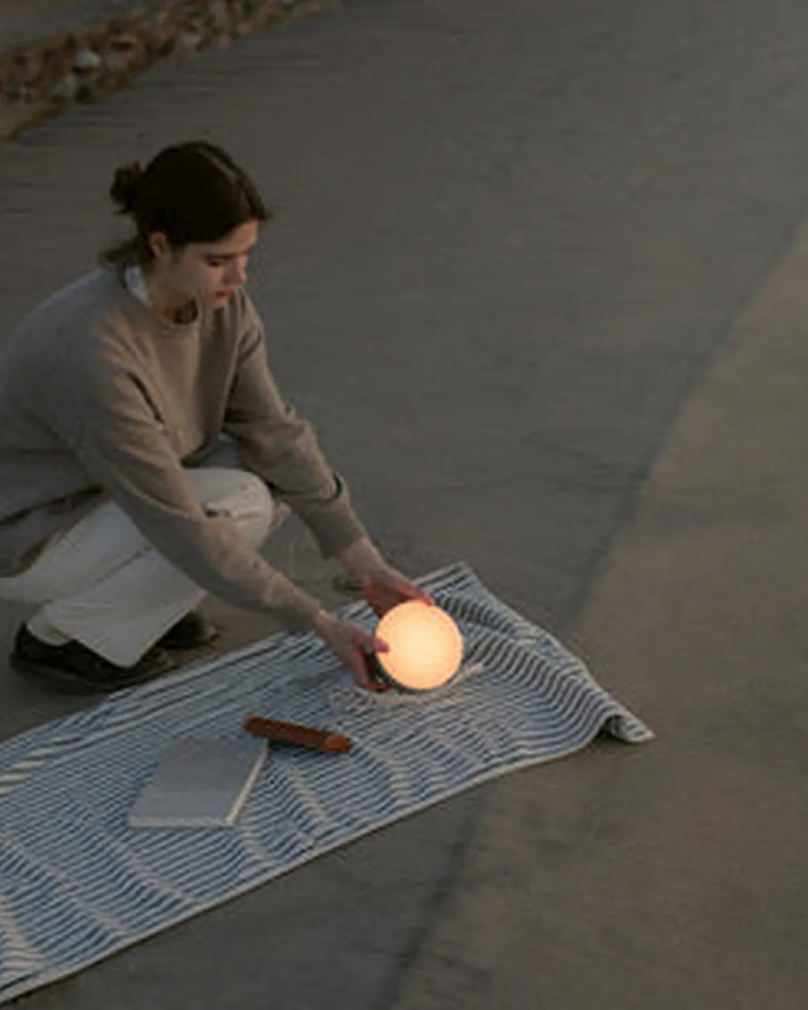 Flytt kulen rundt i hjemmet etter behov og ta den med ut på balkongen, terrassen eller på utflukter til skogen, stranden eller parken. Denne forlokkende lampen er ideell for utendørs sammenkomster som varer utover skumringen.
