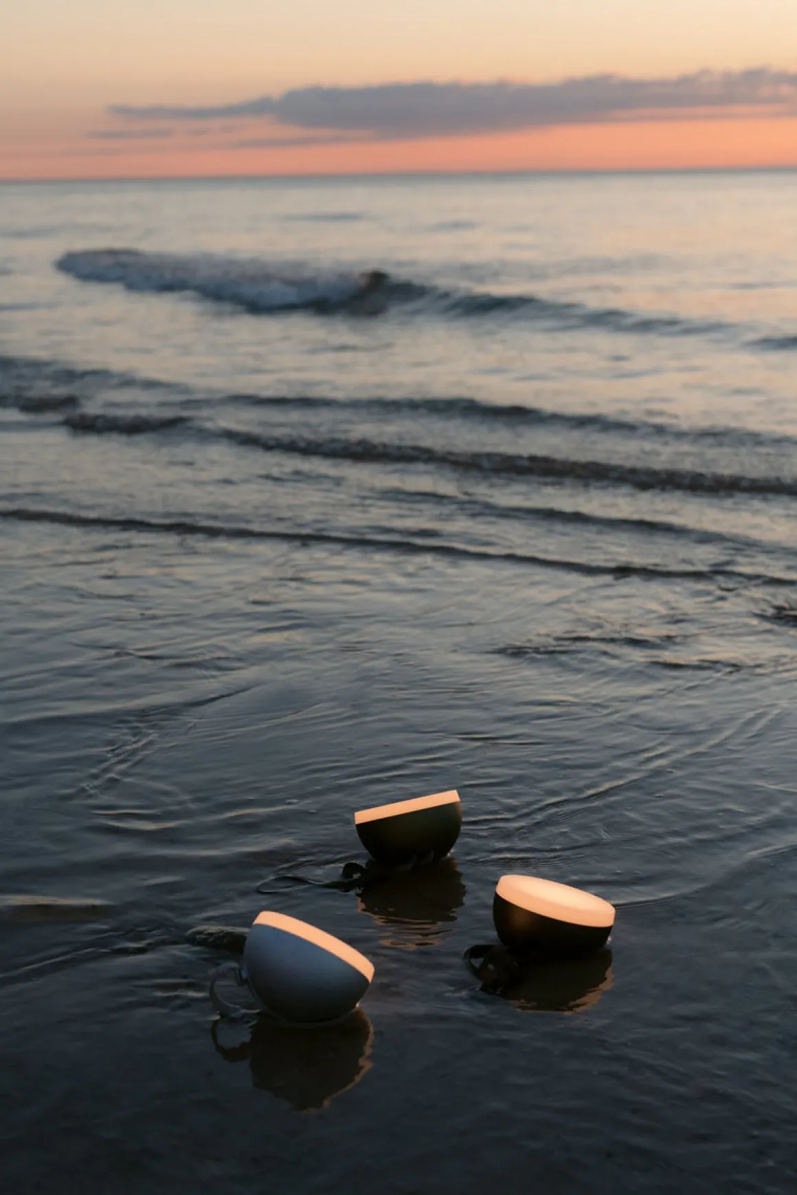 Flytt kulen rundt i hjemmet etter behov og ta den med ut på balkongen, terrassen eller på utflukter til skogen, stranden eller parken. Denne forlokkende lampen er ideell for utendørs sammenkomster som varer utover skumringen.