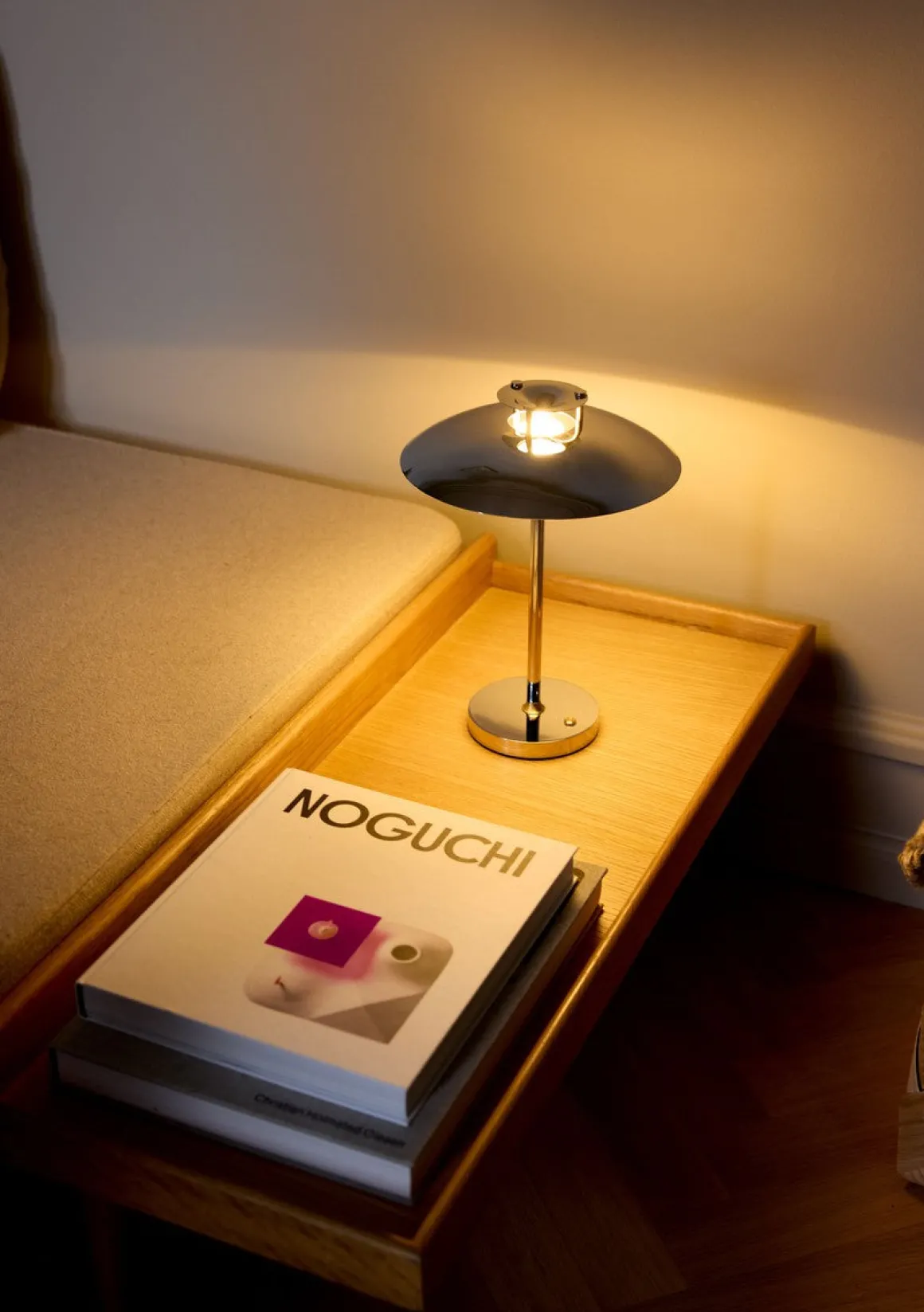 Stepp 1-2-3 er en oppladbar bordlampe med ett elegant design, lampen er enkel å ta med seg og er av god kvalitet. Like fin inne som ute. Lampen har et varmhvitt lys med 2700Kelvin. En stemningsskapende lampe i hjemmet.