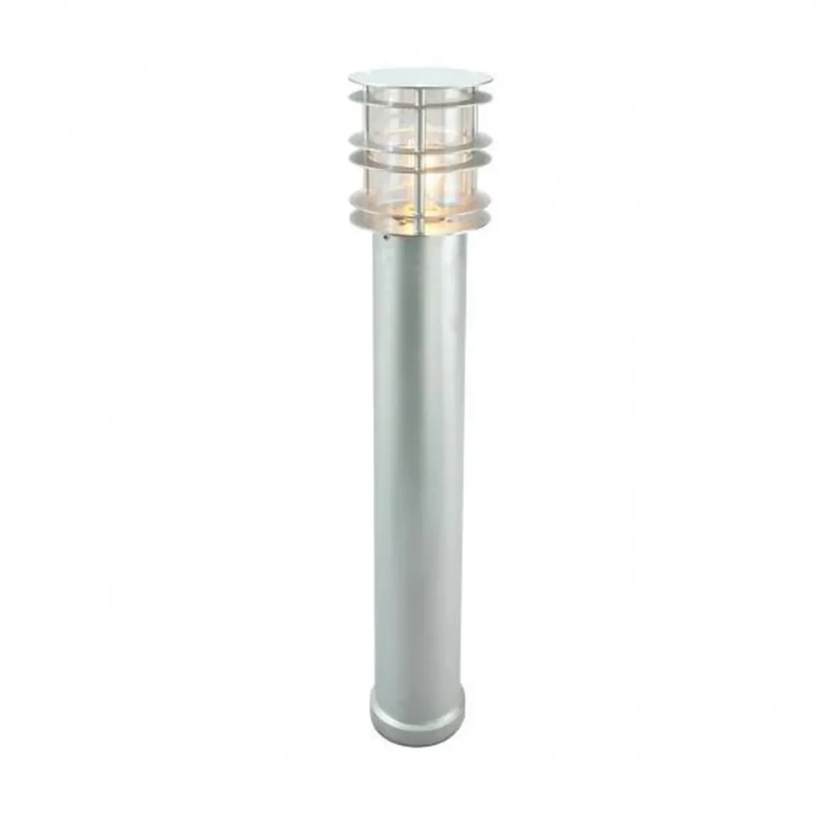Pullert i moderne design med klart glass i polykarbonat. Lampen finnes i tre ulike høyder og i fargene galvanisert stål og sort. Lampen er en del av en serie som inneholder vegglamper i to ulike størrelser, portstolper i to ulike størrelser, blomsterstolpe, teleskopstolper med 1 til 3 lyktehoder, samt pullerter i to ulike høyder. Alle utgaver leveres med klar e polykarbonat deksel.