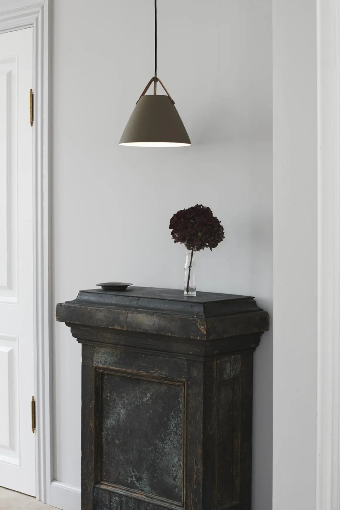 Metall og lær går godt overens med den lette nordiske stilen. Kombinasjonen av disse gjør samtidig at lampen visuelt spiller sammen med en moderne innredning, der materialblanding er en av de største trendene i tiden. Med STRAP virker det innlysende – like innlysende som at en lærrem har gitt navn til nordisk lampedesign. Den smale og elegante lærremmen gir STRAP et varmt og rått uttrykk som balanserer mellom det klassiske og det industrielle. Det følger med to lærremmer i brunt og svart, og så er det opp til deg å gi STRAP dens endelige utseende. Design av Bjørn+Balle