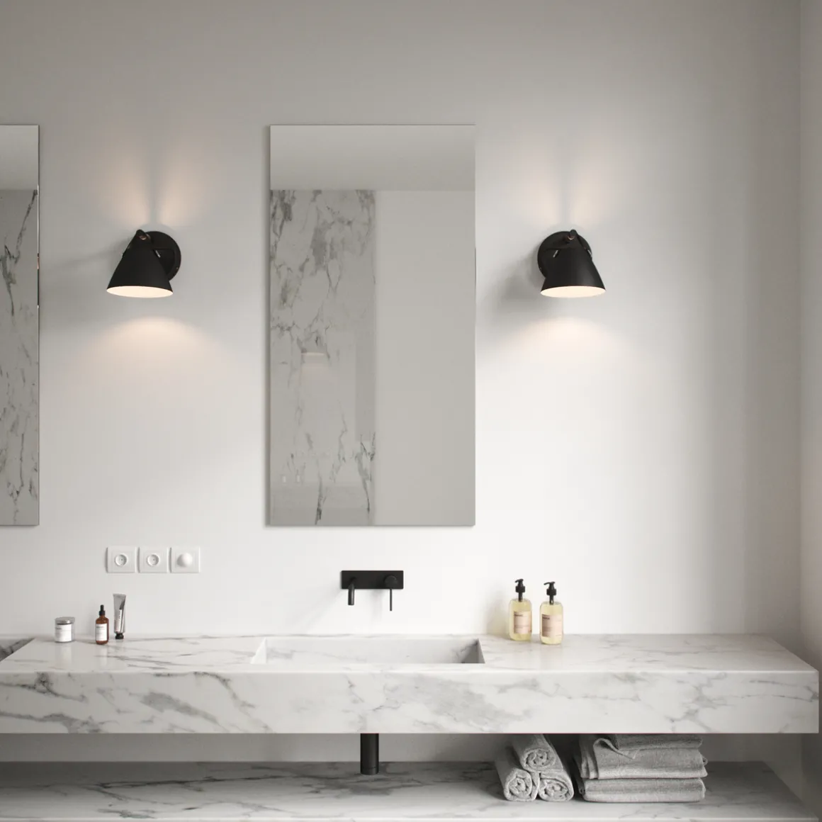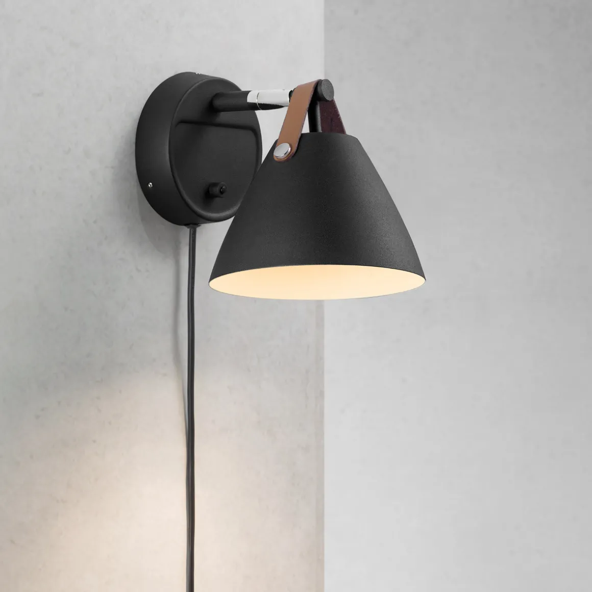 Strap-serien har to nye medlemmer: et svært lite pendel forbegrensede områder som krever en koselig, varm belysning, samt en vegglys for soverommet eller andre steder hvor det er behov for myk vegg belysning. Begge lampene er preget av den distinkte lærreim som ga serien sitt navn og identitet. Den nordisk-inspirert design synes åpenbart enkel og funksjonell, å posisjonere seg vakkert i skjæringspunktet mellom industri og den klassiske. Tilgjengelige i hvit eller sort utgave.