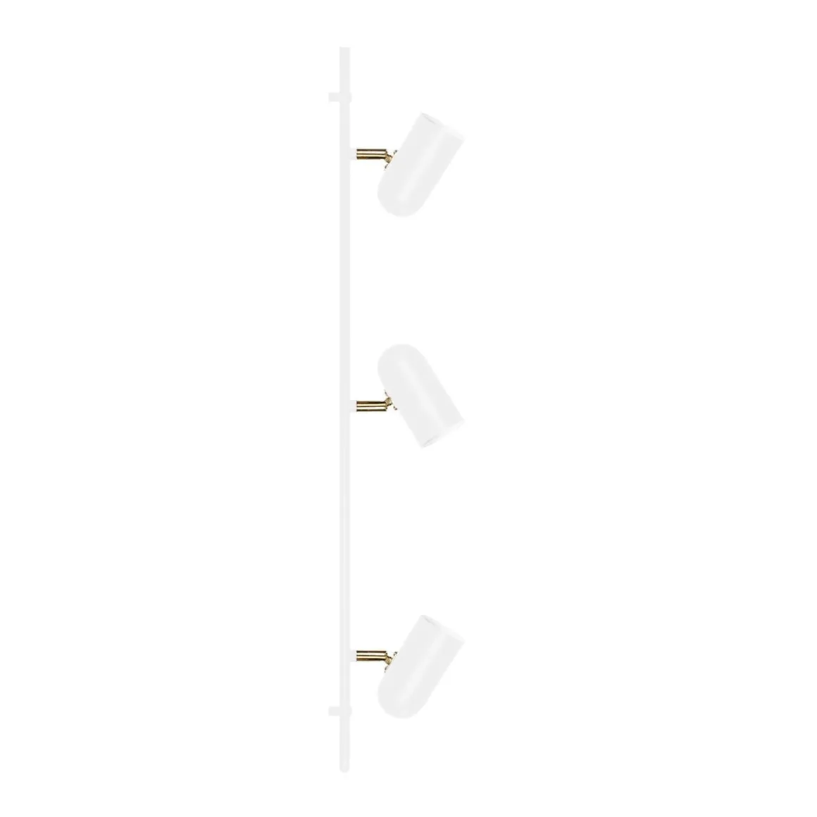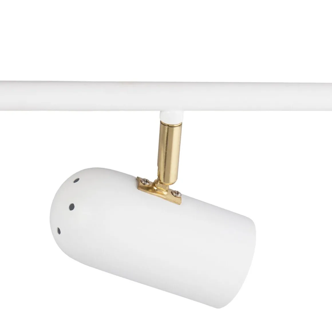 Lampen er laget av hvit lakkert metall med detaljer i børstet messing. Lampen har en 200 cm lang hvit tekstil ledning med koblingsboks.