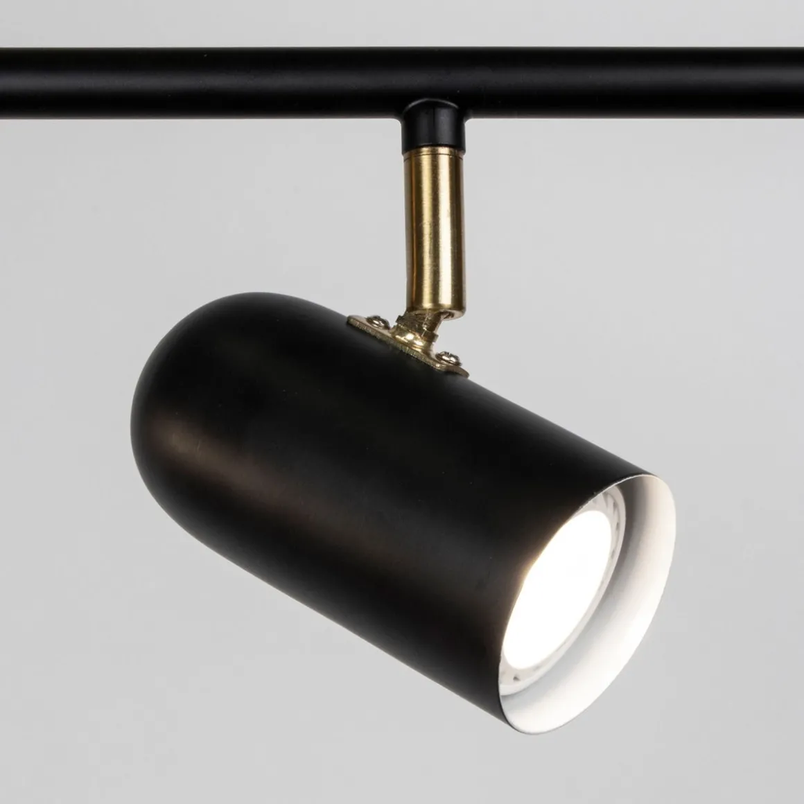 Lampen er laget av matt sortlakkert metall med detaljer i børstet messing metall. Lampen har en 200 cm lang hvit tekstil ledning med koblingsboks.