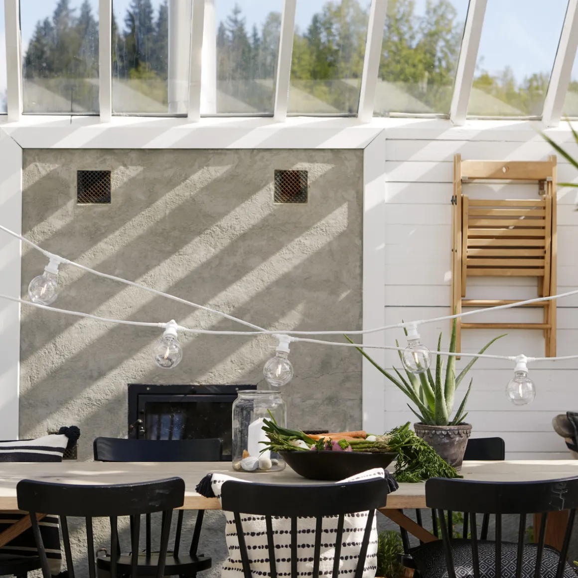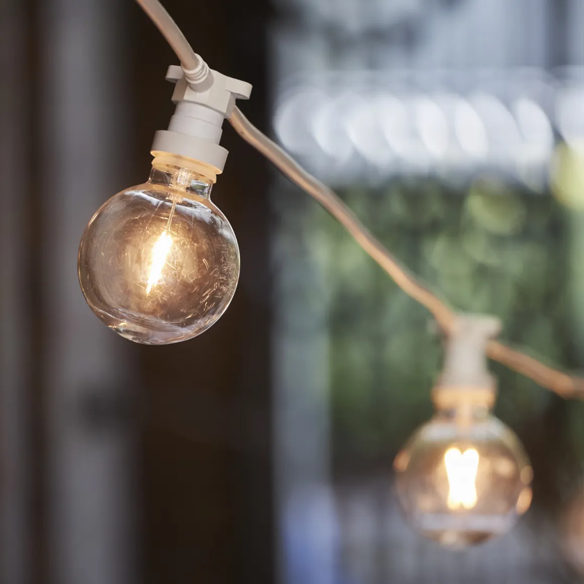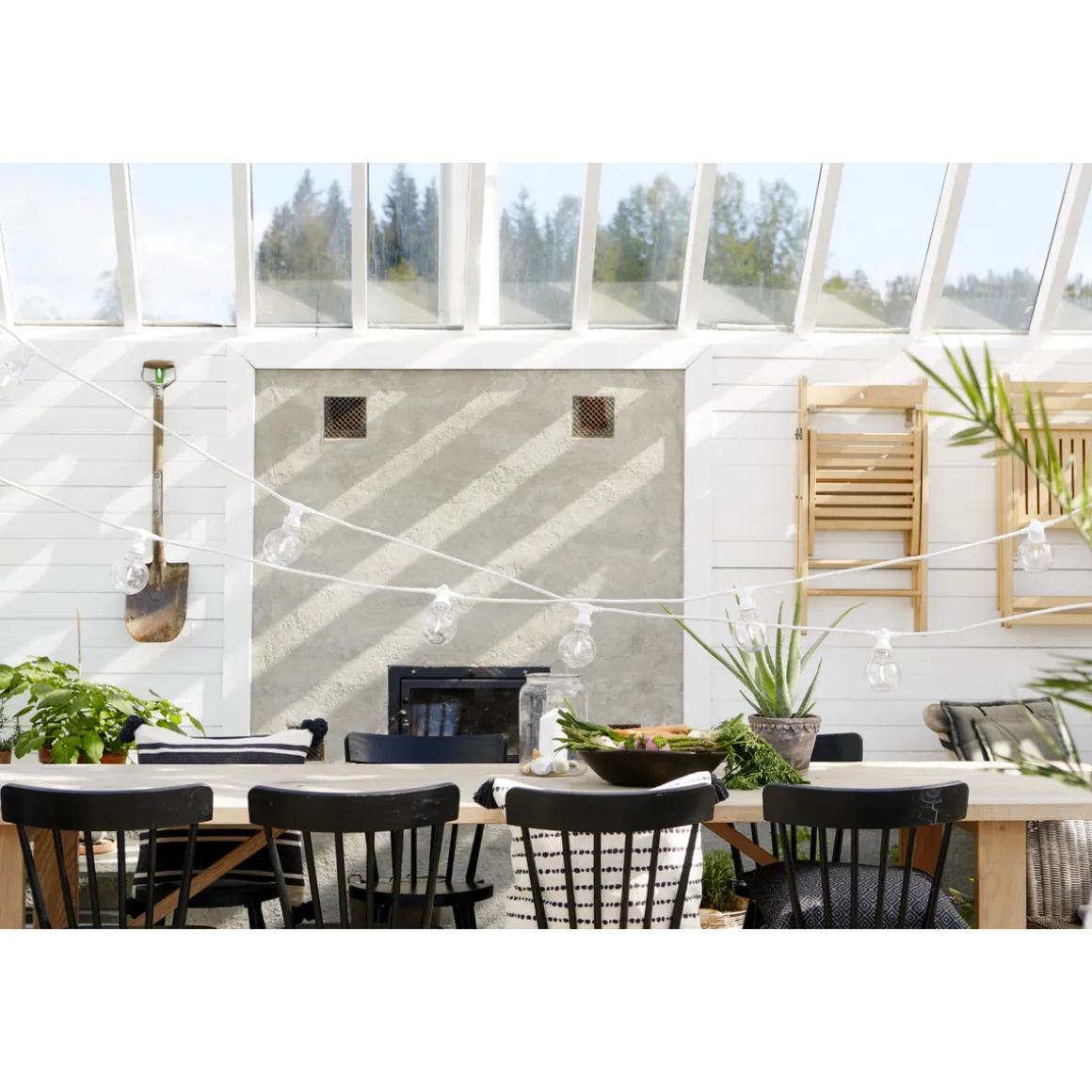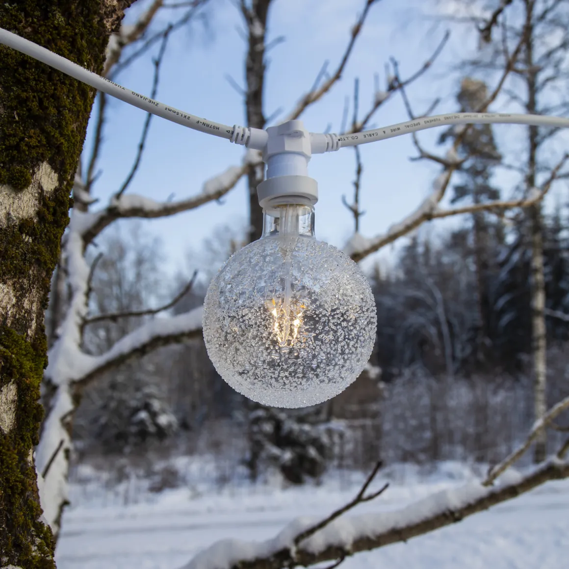 System Expo-lysslyngen kan brukes hele året. Slyngen har sokler til 10 lyspærer med E27-sokkel.