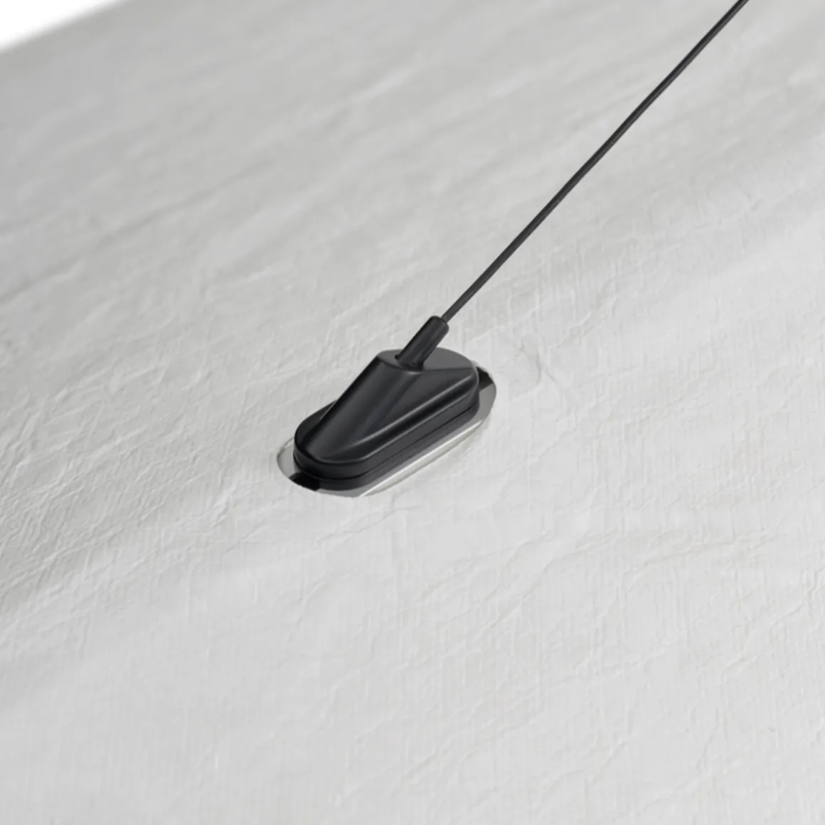 - Materiale: Skjerm i Tyvek-membran (100% resirkulert) strammet opp med karbonstenger, ledning i svart PVC og dimbar LED-lyskilde.