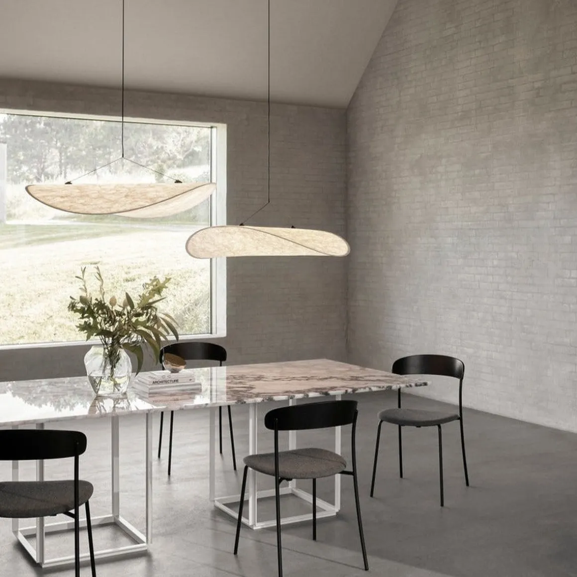 Tense Taklampe ser ut som en myk sky og skaper et spennende og lunt uttrykk til rommet. Taklampen er laget i materialet Tyvek, som er både slitesterkt og mykt. I tillegg er det 100% resirkulerbart. Lampens fleksibilitet gjør at den slanke rammen fremhever det skylignende uttrykket . Fullført med en slank LED-lyskilde, passer alle komponentene i et rør for enkel transport. En virkelig moderne tilnærming til belysning.